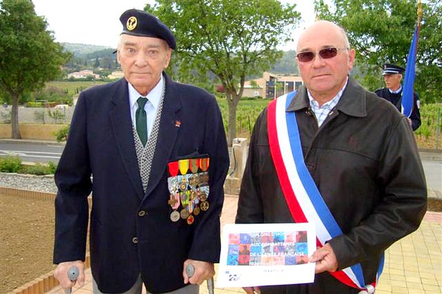 NOTRE CONCITOYEN ROGER MARTY HONORE La cérémonie commémorative du 8 Mai a été particulièrement réussie dans notre commune. Après le défilé dans les rues du village par de nombreux participants, le recueillement a été observé devant le monument aux morts. Après le dépôt de la gerbe et la minute de silence, le Maire Guy GOUT a lu le message du Secrétaire d’Etat à la défense et aux Anciens Combattants. Guy FLAMAND représentant Monsieur FISCHER Président de la section locale des anciens combattants a lu le message de la FNACA. Conduits par leur Directrice Madame DUCEL les enfants dés écoles ont présenté un totem sur lequel chaque enfant a exposé son dessin en rapport avec le souvenir de la seconde guerre mondiale, et, à tour de rôle chaque enfant a lu un texte particulièrement touchant. Afin de dire la reconnaissance du pays à l’ensemble des anciens combattants de la seconde guerre mondiale, sur instruction du Président de la République, le Secrétaire d’Etat a demandé à l’ensemble des Maires France de remettre un diplôme d’honneur aux personnes concernées. Guy GOUT a souligné l’honneur qui lui était fait de remettre cette distinction à Roger MARTY qui a combattu avec courage, sur plusieurs fronts et a fait l’objet de multiples distinctions. Accompagné par son fils Patrice Adjoint au Maire, Monsieur MARTY à reçu son diplôme avec beaucoup d’émotion, une émotion partagée par tous les participants à la cérémonie. Après l’hymne national et le chant des partisans en hommage à la Résistance qui a pris une bonne part dans la victoire, le Maire a remercié l’assistance, la Directrice de l’école et les enfants, pour leur participation à cette commémoration, et a convié l’assemblée à un apéritif remarquablement préparé par René AUQUE adjoint au Maire, et particulièrement apprécié. |