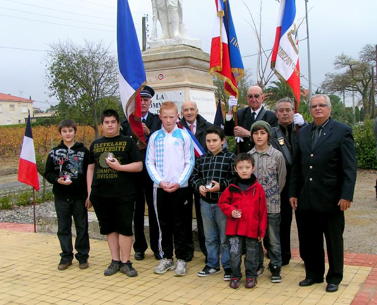 L'Armistice avec les enfants et les ados La célébration de l'Armistice signé le 11 novembre 1918 a pris un accent particulier cette année. Alexandre, Bastien, Clément, Guilhem, Maxime et Sylvain, étaient dans le cortège formé du maire Guy Gout et des élus, des présidents, porte-drapeaux et membres des associations d'anciens combattants et du Souvenir français, de la directrice de l'école Laeticia Le Goff, de la population locale, venus au monument aux morts honorer la mémoire des soldats et civils tués pendant le plus grand conflit que la France ait connu. Avant le traditionnel dépôt de gerbe par le maire et le président Guy Flamand, écoliers, collégiens et lycéen ont déposé des bougies au pied du monument aux morts, «les flammes de l'espoir» du Souvenir français présidé par Jean-Louis Miquel. Après les sonneries et la Marseillaise, le maire a donné lecture du message du Président de la République qui rappelait que 2011 était le 90ème anniversaire de l'inhumation du soldat inconnu sous l'arc de Triomphe.