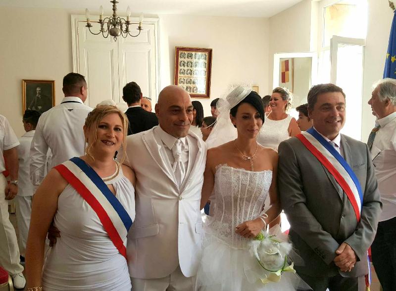 Nous voulons un mariage blanc! Selon le souhait de Marlène Ferrand et Renaud Vergé, leur mariage serait un mariage «blanc»... teinté d'une bonne dose de romantisme. Des mariés aux invités en passant par les tenues des demoiselles d'honneur, les décorations...Tout était blanc. Et c'est aussi tout naturellement, tout de blanc vêtue que Aude Gilabert, 2ème adjointe et officier d'état-civil par délégation a reçu le consentement des jeunes époux devant leurs témoins, leur fille Myha, le maire Patrick Dapot et la très nombreuse assistance réunie salle des mariages. Le blanc était aussi de rigueur dans l'église où le jeune couple a été accueilli par le Père Louis qui a célébré une cérémonie religieuse empreinte d'émotion et de joie..C'est en calèche que les jeunes mariés ont ensuite rejoint le boulodrome pour le vin d'honneur....Et si l'assistance était aussi nombreuse pour assister à ce «mariage du siècle», c'est que Marlène est assistante d'animation à l'école locale et est la fille de Sylviane et Simon Ferrand, employé municipal en retraite depuis quelques mois...et sont donc très connus et appréciés dans le village. Nos vœux de bonheur les accompagnent.