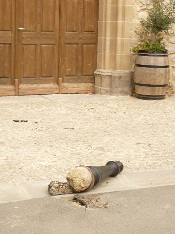 arraché faisant un trou important dans le bithume de la place de la mairie ou