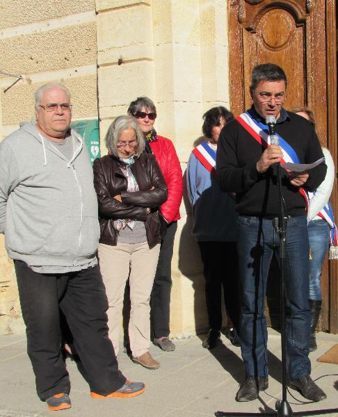Dans un silence poignant, une petite centaine d'habitants, rassemblée devant la mairie, s'est associée à l'hommage national aux victimes des attentats de vendredi à Paris. Le maire Patrick Dapot ne cachait pas son émotion en ce moment très particulier pour rappeler que «la France, la République, notre jeunesse ont été frappées lâchement au cœur de notre capitale». Et d'ajouter «ce sont tous les Français qui ont été visés et sont endeuillés par cette attaque contre des compatriotes innocents... En ces heures dramatiques, nous tenons à exprimer, nous Thézanaises et Thézanais toute notre compassion aux victimes et à leurs familles». Le maire a remercié tous les médecins et personnels de santé, gendarmerie et forces de police, sapeurs pompiers, personnels de services privés de sécurité et les anonymes qui effectué un travail remarquable. Cette brève cérémonie s'est terminée par la minute de silence «par respect pour toutes les victimes et leurs familles de ces actes barbares, lâches, inhumains qui ont visé les valeurs fondamentales de notre société». La Marseillaise et une salve d'applaudissements ont salué ce moment solennel. |