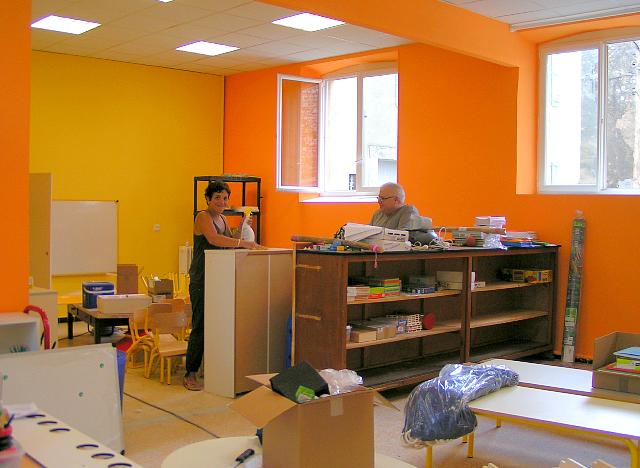 En avril dernier, le maire Guy Gout et René Auque, adjoint aux affaires scolaires informaient le conseil municipal que les enfants de maternelle du RPI Thézan/Montseret ne seraient plus accueillis à St André de Roquelongue. Les élus ont donc décidé à l'unanimité de créer une école maternelle dans le village pour répondre aux besoins des enfants et de leurs parents. Réaliser une classe maternelle avec salle de repos et salle de motricité à l'étage en un peu plus de deux mois... Tel était le défi lancé à la réunion de conseil fin avril. Les travaux ont été faits en régie par les employés de la commune menés par Sébastien, aidé dès que le besoin s'en faisait sentir par Simon, Philippe et Fabrice. Les premiers travaux ont débuté mi- juin à l'étage. La salle de repos et de motricité a été réalisée, les murs ont été recouverts d'une belle peinture lavande et des sanitaires adaptés à la taille des petits ont été installés. Défi relevé! La municipalité a été très attentive au bon déroulement des travaux pendant les mois d'été. Le maire de Montseret Jean-Luc Jalabert est venu visiter l'école dernièrement et a félicité le personnel communal pour cette réalisation qui permettra aux bambins d'effectuer leur rentrée dans les meilleures conditions. Le défi était lancé en avril, il a été relevé dans les conditions prévues. Un grand bravo à tous les acteurs de ce défi, y compris Laeticia Legoff, nouvelle directrice et Belinda Fillon, ATSEM qui ont effectué leur rentrée une semaine plus tôt pour tout mettre en place sereinement.