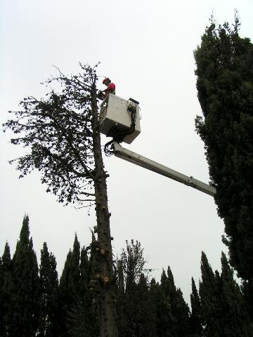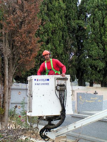 Les arbres en mode coupe d'automne Trois ifs du cimetière neuf ont subi une coupe sévère des branches très abîmées dont certaines menaçaient de tomber sur des monuments tout proches d'eux. Ce travail a été effectué par Sébastien, employé communal qui a manipulé la tronçonneuse de main de maître pour élaguer les arbres. C'est aussi à ce dernier qu'est revenue la manœuvre de la nacelle située à environ dix mètres de hauteur, grâce à une formation spécifique suivie dans ce sens et un diplôme obtenu en début d'année. Pour l'occasion, la commune avait loué l'engin auprès d'une société narbonnaise. Ses collègues ont eu la charge de mettre les branchages dans le camion de la commune pour les emmener à la déchetterie. Dans la foulée, profitant de la présence de la nacelle, place du Languedoc, il a également effectué la direction et la fixation des branches de glycines plantées au pied du jardin suspendu il y a deux ans afin qu'elles courent sur les supports pour former une belle tonnelle ombragée le prochain été.