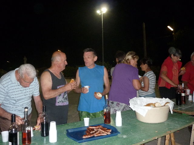 saucisses grillées à volonté accompagnées de pain et du «lait de la vigne»...