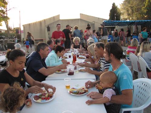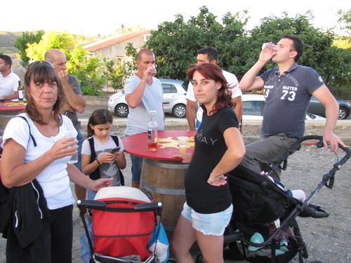 Après le tour de table mercredi, la soirée familiale du jeudi et le concours de boules non officiel en doublettes vendredi après-midi, place était donnée à la soirée tapas. Les tonneaux couronnés de superbes plateaux ornés de la croix cathare accueillaient le public debout et autour de grandes tables pour qui voulait s'asseoir... Trois groupes s'y sont succédés: Sax Peace Tools et leur musique acoustique, Danito et les Rats'cordés et leurs chansons revisitées et le groupe occitan Atal, tous très appréciés et applaudis.