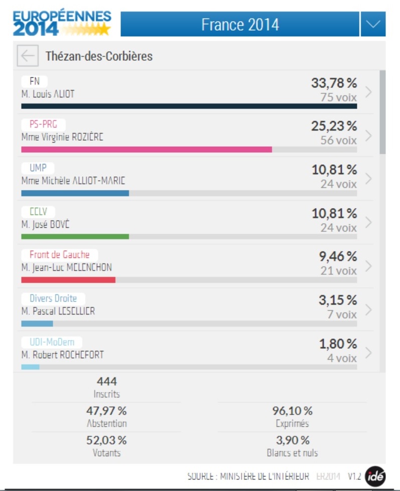 Résultat des élections européennes à Thézan des Corbières
