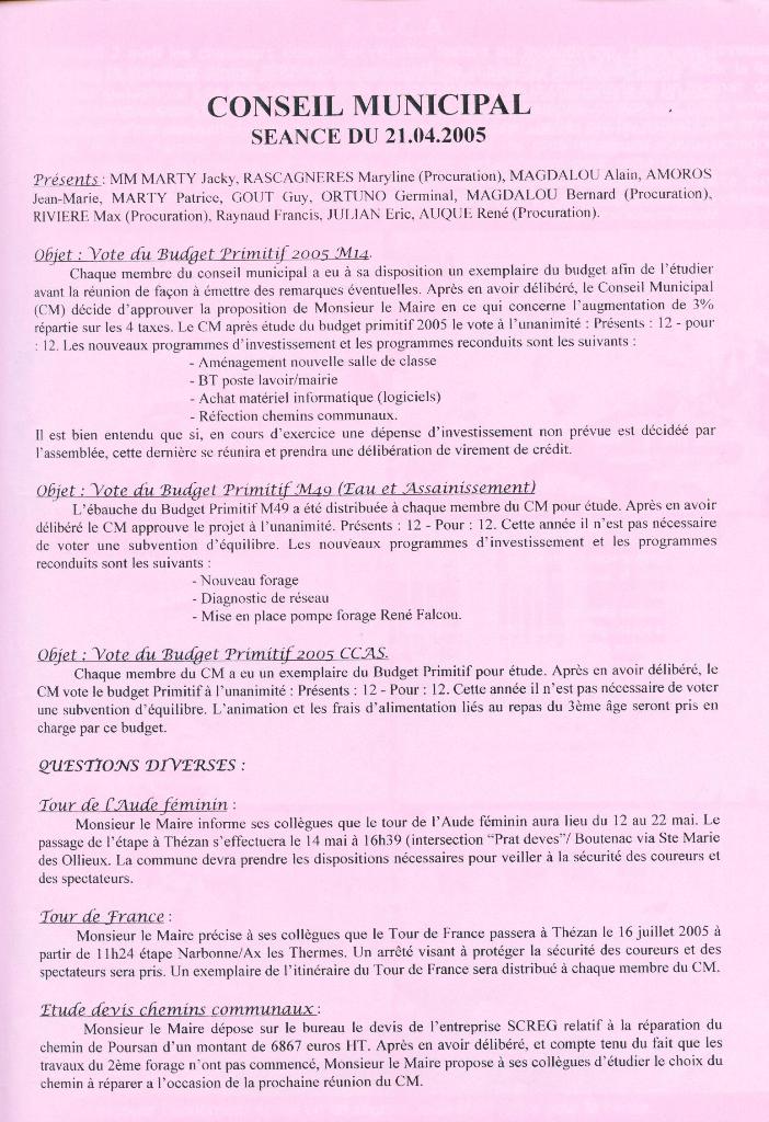Compte-rendu des Séances du Conseil MunicipalSéance du 21 Avril 2005