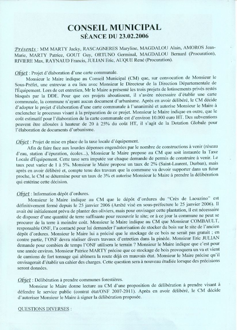 Compte-rendu des Séances du Conseil MunicipalSéance du 23 Février 2006