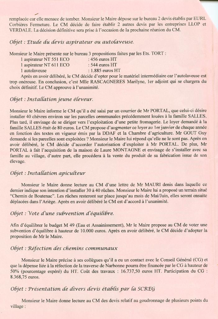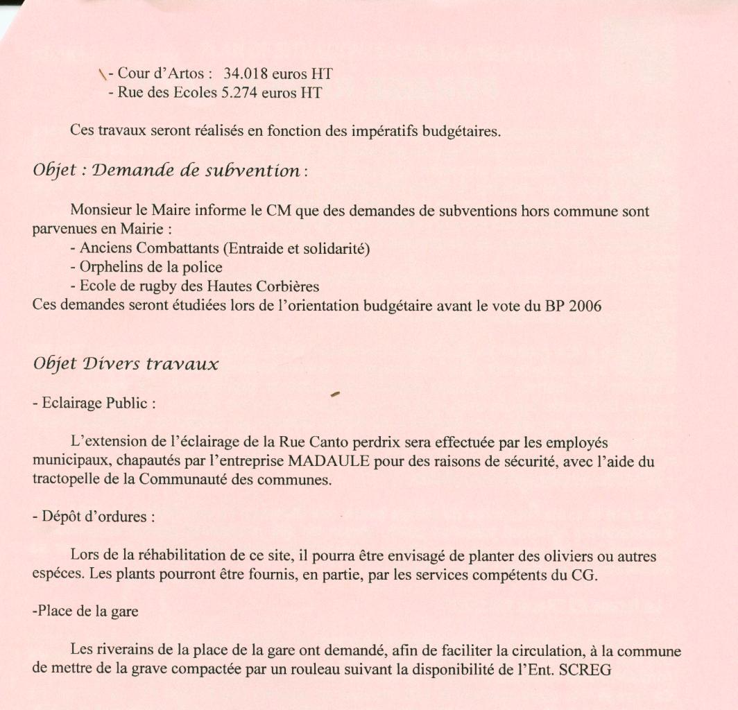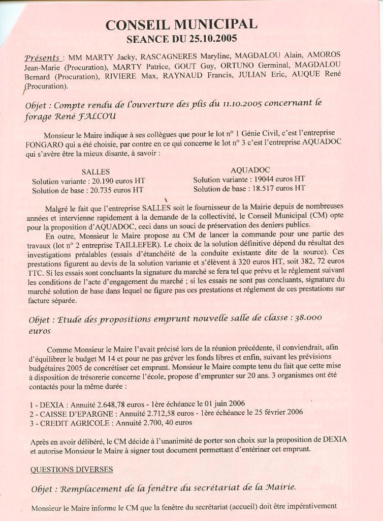 Compte-rendu des Séances du Conseil MunicipalSéance du 25 Octobre 2005