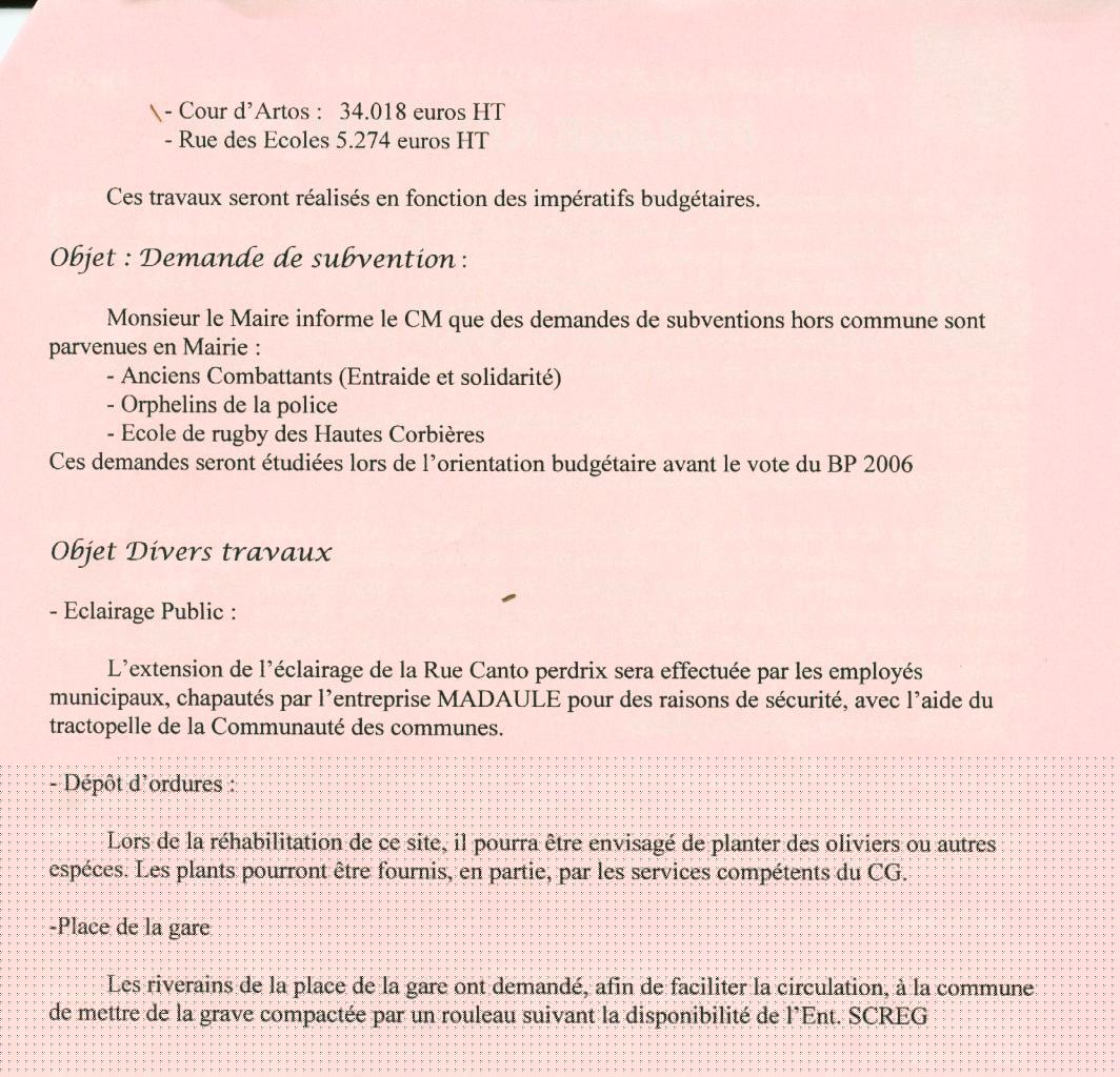 Compte-rendu des Séances du Conseil MunicipalSéance du 25 Octobre 2005