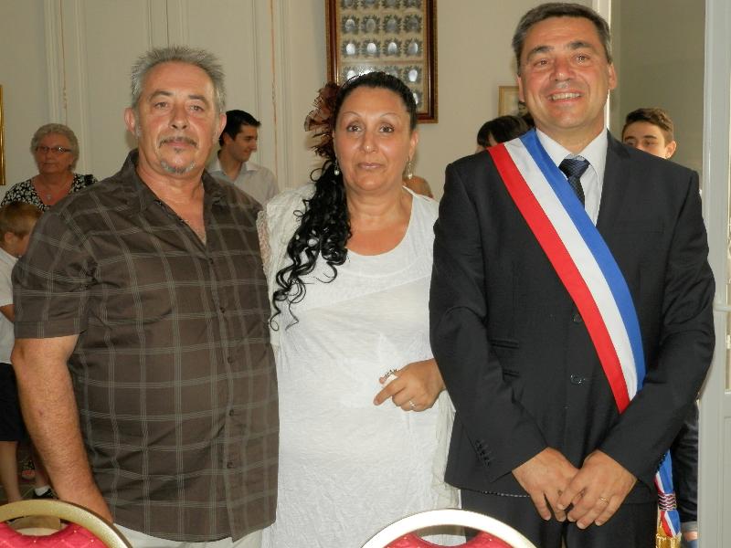ls se sont dit « oui » Phiilippe Bert et Odile Torra se sont rencontrés il y a dix ans. Philippe, ébéniste, peintre et décorateur attitré des Amis du patrimoine - c'est lui qui restaure toutes les peintures et menuiseries de l'église Ste Eulalie et Odile ont souhaité officialiser cet anniversaire en se mariant ce samedi 2 août. C'est avec émotion que Patrick Dapot, maire a célébré son premier mariage, rappelant qu'ils étaient faits l'un pour l'autre. «Vous vous cherchiez, vous vous êtes trouvés» a-t-il souligné avant de recevoir le consentement des époux, non moins émus. Et c'est avec un «grand oui» que Philippe a répondu à la traditionnelle question du maire. Et c'est Willow, un superbe labrador qui a apporté les alliances que les nouveaux mariés se sont glissé au doigt sous les applaudissements de leurs enfants, famille et amis, réunis dans la salle de la mairie. Avec ses félicitations, le maire a remis au nouveau couple le livre des mariages et la médaille de la ville en souvenir de ce jour mémorable...