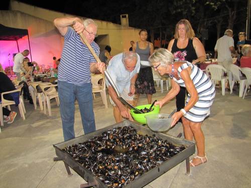 Chaleureuse soirée avec la FJEP La FJEP, club de gym et sport local organisait son repas annuel dont les bénéfices servent à financer les cours de gym douce et gym tonique dispensés par Christine, l'animatrice sportive. Ce fut une belle soirée chaleureuse et conviviale - en plein air - la dernière de la saison estivale - à laquelle participait une centaine de personnes. Autour de Charlène, la présidente et de Cathy, la trésorière, les bonnes volontés n'ont pas manqué pour assurer la réussite de cette manifestation. Que ce soit pour la sangria, les amuse bouches par les adhérents, la super cagette de raisins offerte par Jean-Loïc Villa et son épouse et les fameuses moules concoctées par Franck et José et servies... à la pelle... tout le monde a mis la main à la pâte. Le maire Patrick Dapot a été l'un des premiers à apporter son aide ainsi que trois élus municipaux présents ce samedi soir. L'ambiance très amicale qui a régné au cours de la soirée ne pouvait qu'inviter les organisateurs à renouveler l'opération l'an prochain. Mais avant les sportives reprendront les cours les 11 et 12 septembre!