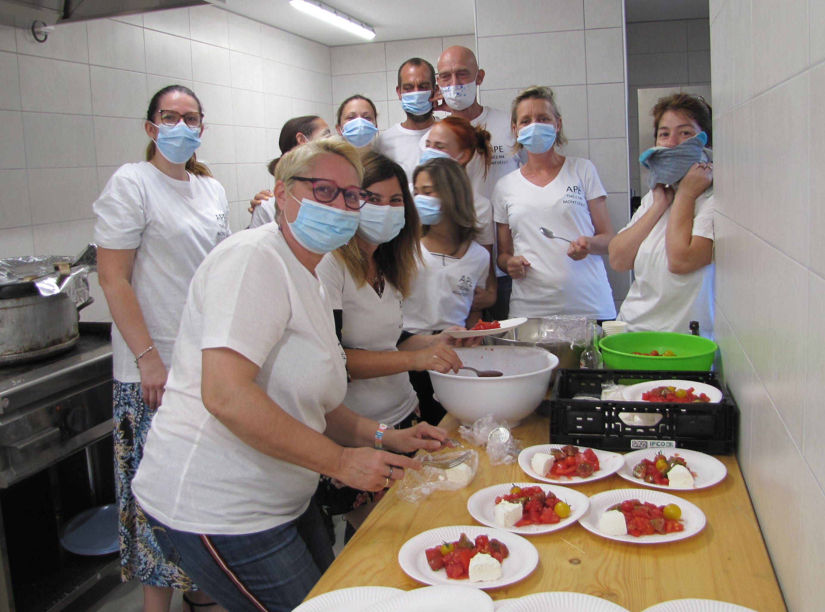 Au repas du 14 juillet de l'APE La crise sanitaire n'ayant pas permis les animations habituelles, l'APE, Association des Parents d'Élèves présidée par Géraldine Dulary, toujours très motivée pour récolter des fonds pour les deux écoles du RPI Thézan-Montséret, s'est lancée dans la préparation du repas du 14 juillet. Bien lui en a pris! Ce fut une soirée intergénérations encouragée par le maire Philippe Puech et plusieurs membres du conseil municipal, d'autant plus appréciée qu'elle concernait les enfants. Les membres de l'association aidés de bénévoles ont préparé le repas avec des produits locaux pour la quasi totalité des plats appréciés des convives. Les conditions météo n'ont pas permis que le repas se déroule en plein air mais les enfants n'en ont pas moins profité pour se retrouver et jouer pendant que les adultes se restauraient. Pour une première, ce fut une réussite!