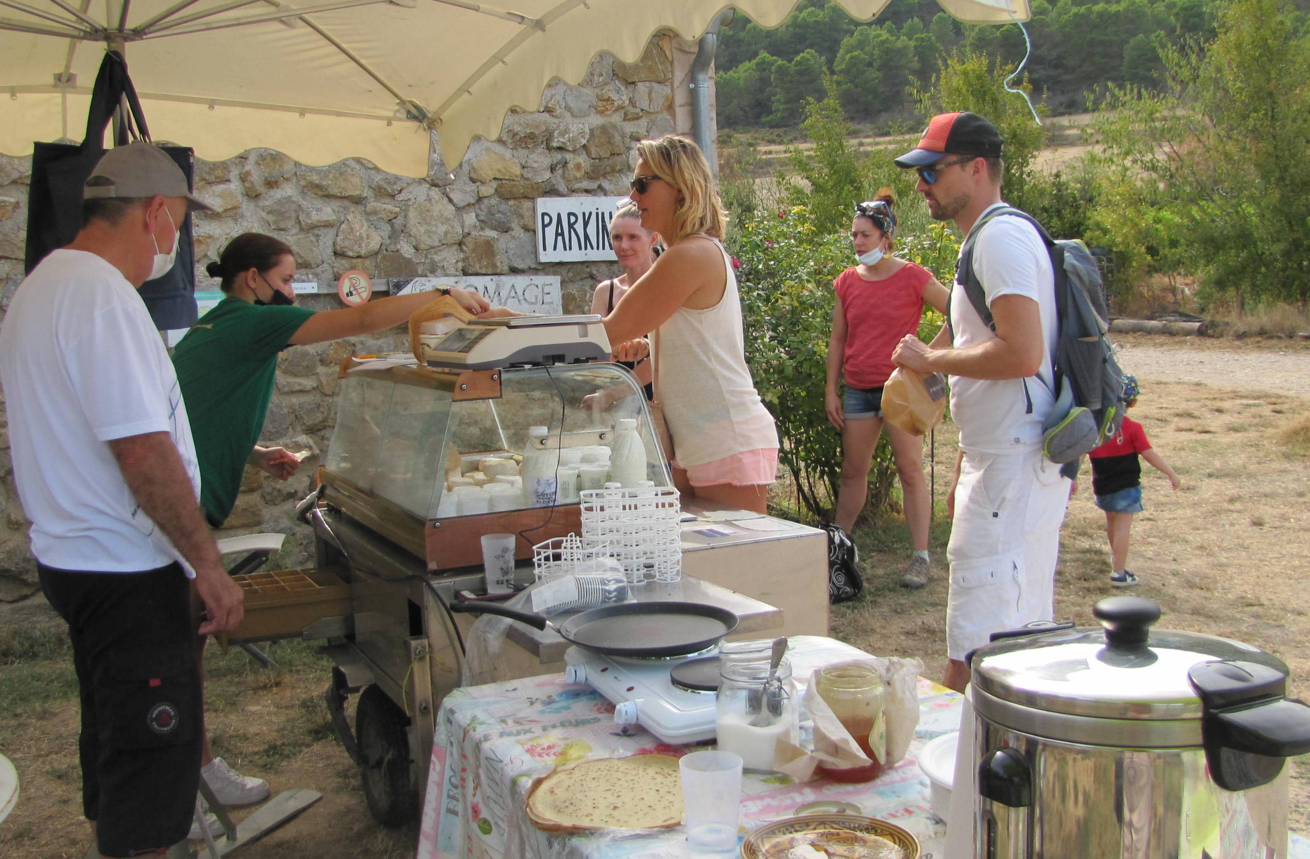 du 09 septembre 2021 A la découverte de la ferme du Montagut Malgré la forte chaleur et les restrictions sanitaires, près de 350 visiteurs dont une centaine d’enfants sont venus visiter la Ferme du Montagut ce dernier dimanche, dans le cadre l’opération "De ferme en ferme" organisé par le CIVAM . Stéphanie et Guillaume Portal, propriétaires de la chèvrerie ont dévoilé les secrets de leur savoir-faire et celui de leur troupeau qui regroupe 80 chèvres qui se nourrissent dans la garrigue et des champs communaux et privés et fournissent 50 000 litres de lait par an dont la majorité est vendue sous forme de lait cru et sert à la fabrication de divers produits laitiers, fromages et yaouts, de tome (800k/an) et fromage à pâte molle, nouveauté decette saison qui a connu un beau succès! A noter que 7 000 litres sont transformés en écus et écussons du Pays cathare et que la ferme vend 120 chevreaux/an. Autant de produits que le public pouvait retrouver sur stand de la ferme qui avait mis de l’eau à disposition pour se rafraîchir. Les visiteurs ont été ravis de l’accueil reçu lors de cette journée familiale, ludique et conviviale.