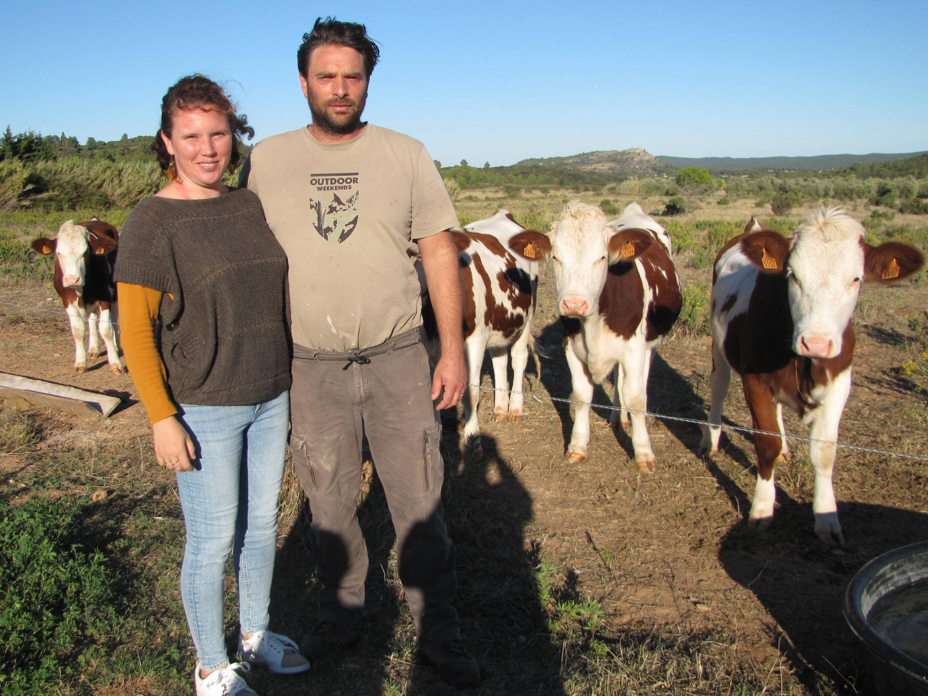 du 15 octobre 2021 Des nouvelles pensionnaires à la Ferme du Montagut Elles se prénomment Rayon, Radieuse, Paty et Réglisse et sont les quatre génisses montbéliardes qui vont donner une nouvelle orientation à l’exploitation de Stéphanie et Guillaume Portal. Tout le monde connaît la ferme du Montagut, réputée pour ses fromages de chèvres et autres spécialités à base de chevreau. La chèvrerie prend un nouveau virage avec l’arrivée des génisses. « On y pensait depuis quelque temps, car, pour moi, la vache est l’animal emblématique d’une ferme : on ne pouvait pas ne pas en avoir », souligne Guillaume Portal très ému d’accueillir ces nouvelles pensionnaires il y a un mois. Si Stéphanie ne connaissait pas ces animaux et était à la fois ravie et angoissée, leur arrivée a levé tous ses doutes. Tout a été fait pour qu’elles s’habituent aux plaines et jachères, leur nouvel environnement. Âgées de 18 mois à deux ans, elles auront trois ans à leurs mises bas et au printemps 2023, les veaux de lait seront mis à la vente. Puis, suivront le lait et les fromages au lait de vache. De leur côté, les 80 chèvres se partagent la garrigue l’hiver et la plaine au printemps, sans oublier les trois juments, la mule et les six ânes qui vivent côté garrigue. Développer l'accueil à la ferme Guillaume et Stéphanie viennent également d’acquérir des parcelles de terre entre leur exploitation et la route départementale qui sera un accès pour le déplacement des animaux, mais permettra aussi le développement de l’accueil à la ferme pour le tourisme, les écoles et les camping-caristes de passage. Dans ce but, prochainement, ils vont y planter deux doubles haies champêtres de 250 m et une simple de 170 m, soit 700 arbres d’essences méditerranéennes, des fruitiers ou d’ornement. Des plantations qui se font en partenariat avec l’association Arbres et paysages du réseau des pépinières départementales. « Cela demande un certain investissement. Depuis notre arrivée à la ferme, nous aurons ainsi planté plus de 1 000 arbres », précise Guillaume. Un avenir prometteur pour la ferme du Montagut qui ne manque ni d’idées, ni de courage pour stabiliser les emplois et faire évoluer leur exploitation.