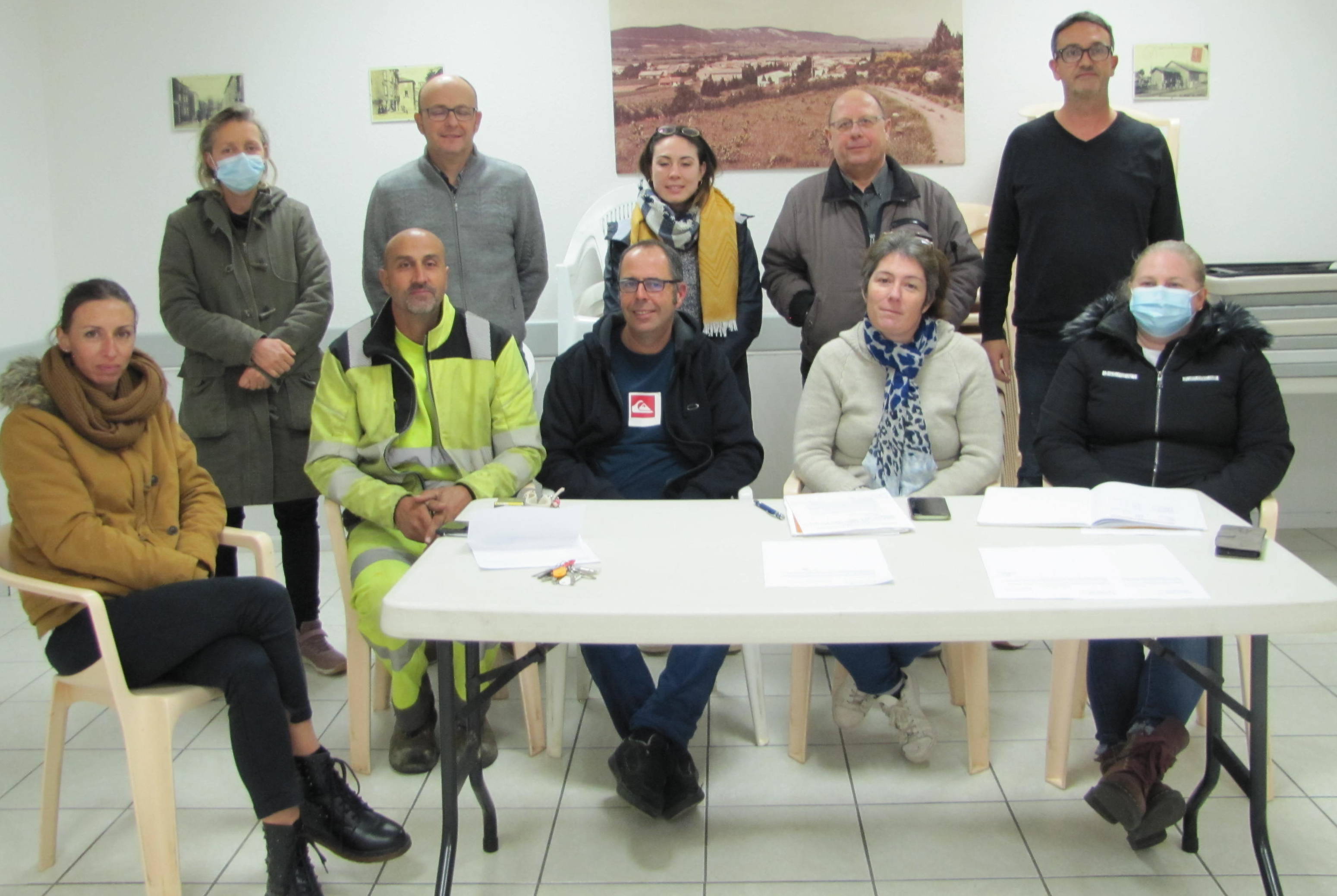 Debout aux côtés des deux adjoints (à gauche), le nouveau trio qui remplace l'ancienne équipe (assise) |