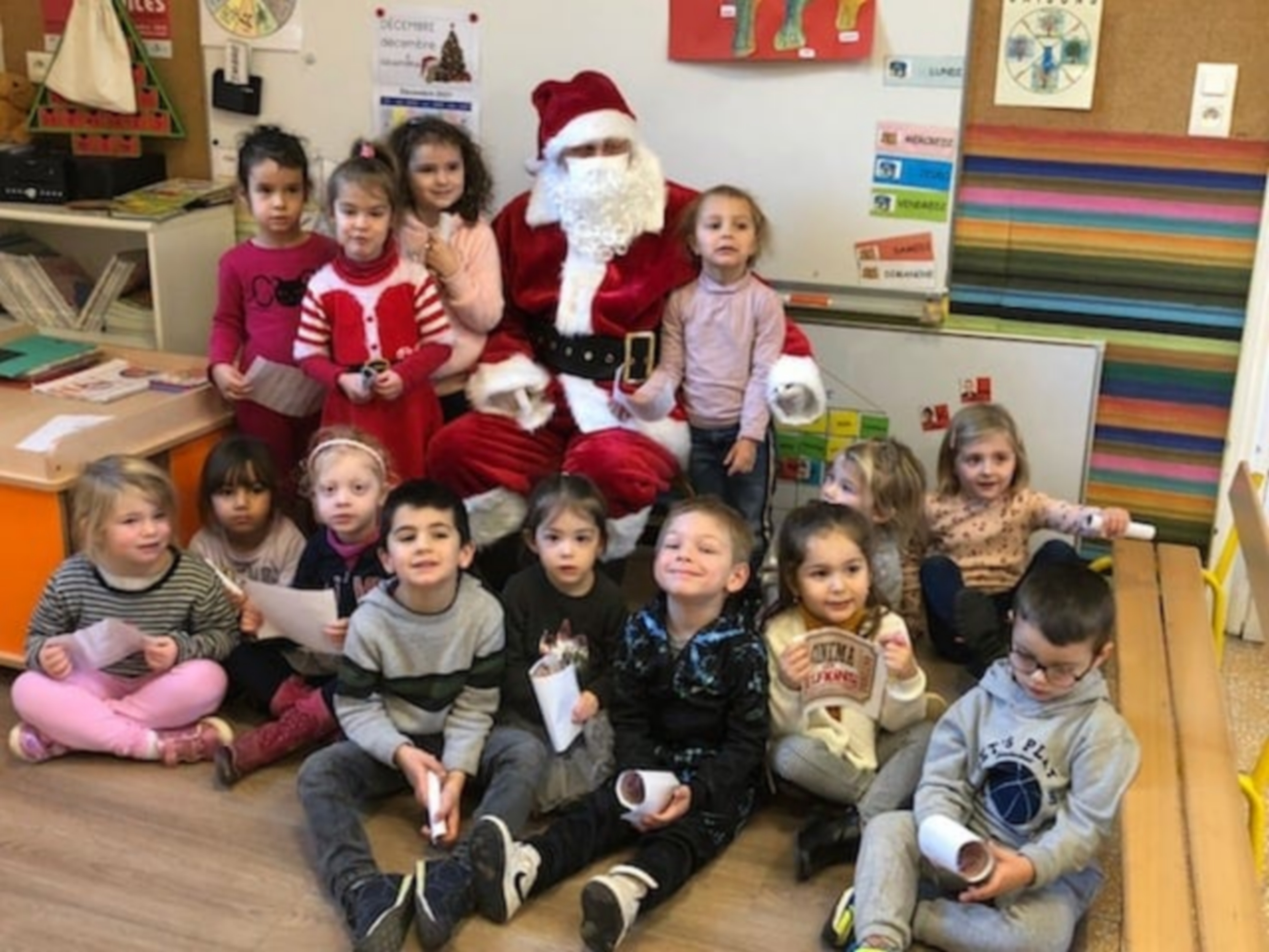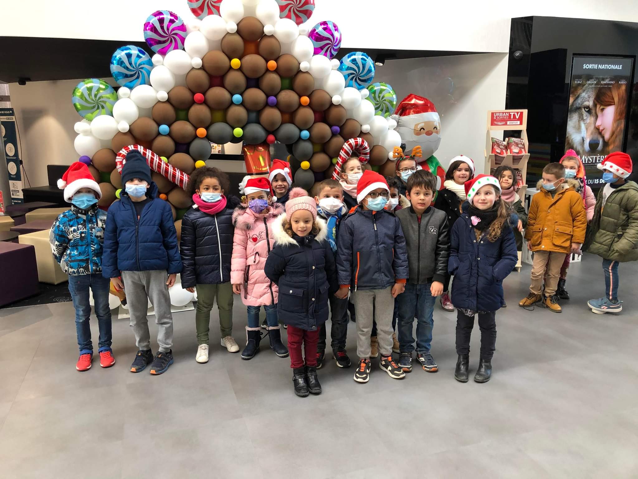 Maternelles petite et moyenne section ont rencontré le Père Noël avant la séance de cinéma.