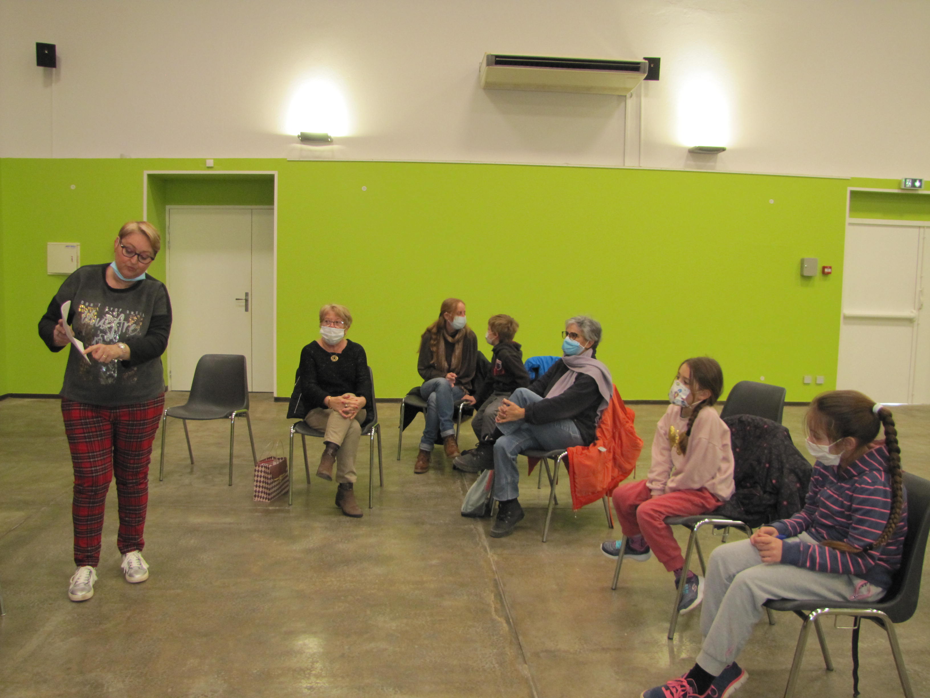 Enfants et adultes présents ont écouté avec attention le conte mimé par Valérie et les conseils pour écrire leur conte ou leur histoire.