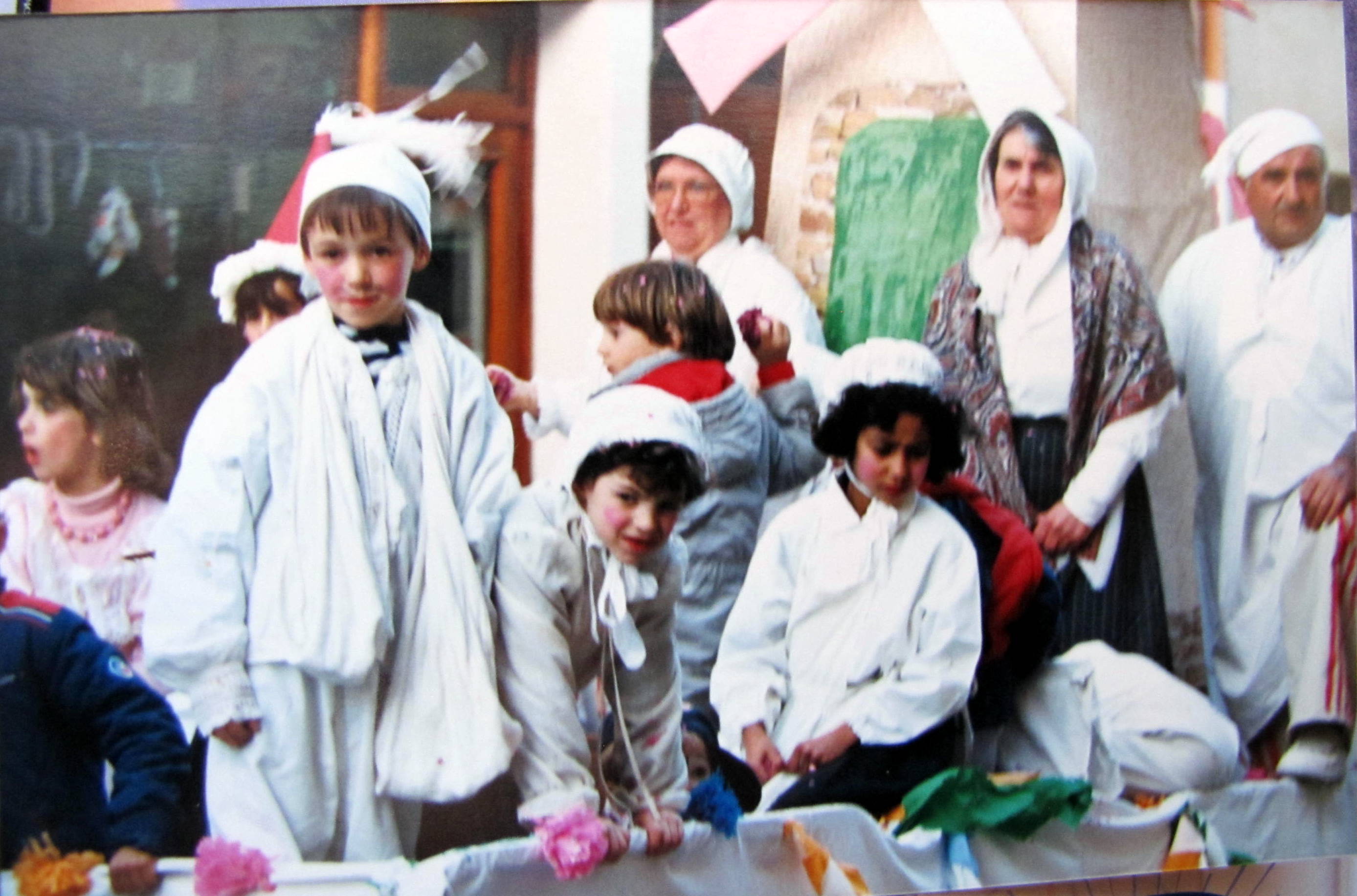 Comme souvent, ici en 1989, au cours de la bufatière, Hervé Thomas (à droite) au côté de Valentine aspergeait le public de farine! |