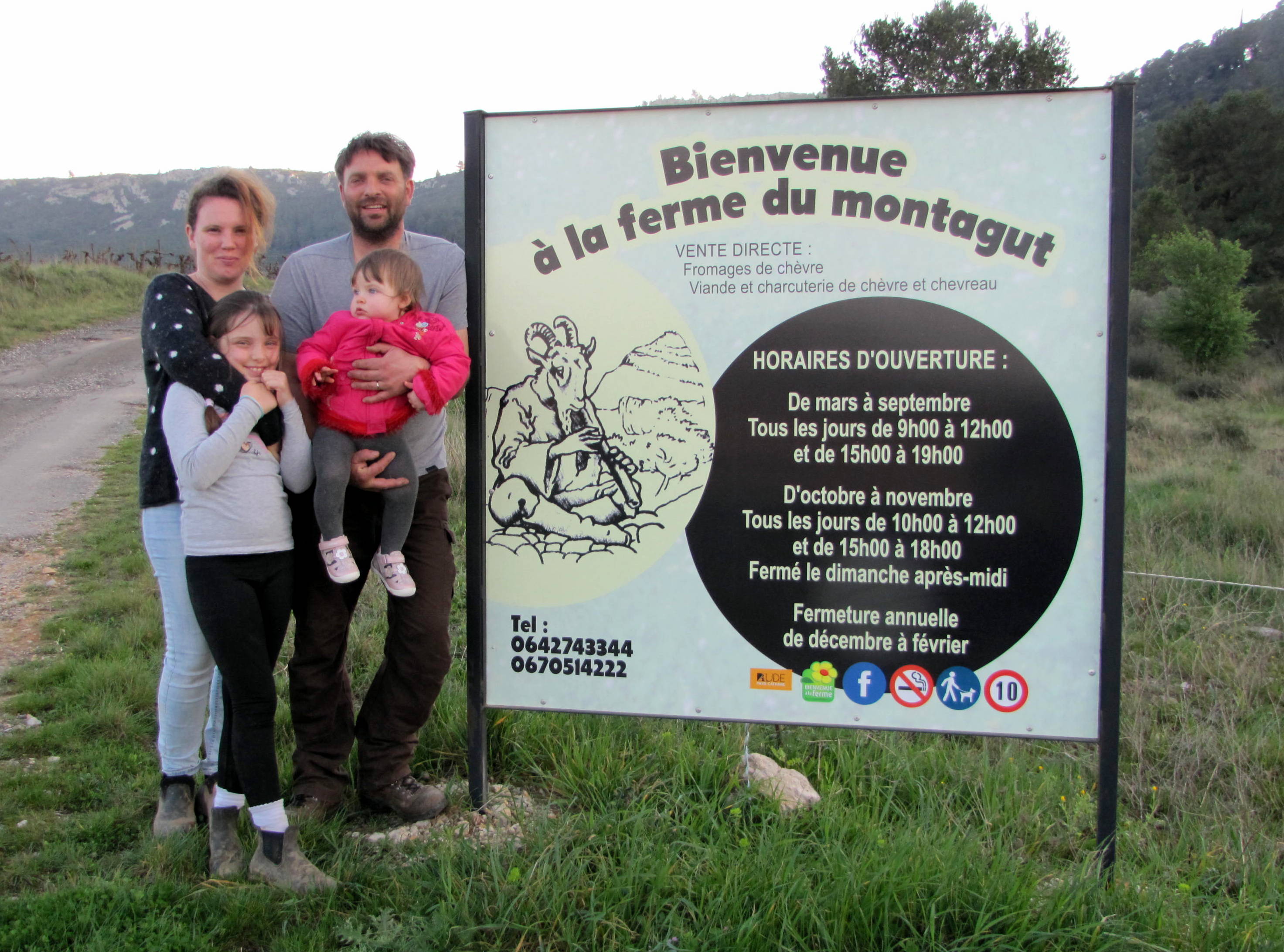 A la ferme du Montagut, la famille Portal confirme les inscriptions du nouveau panneau installé à l'entrée de leur chemin. |