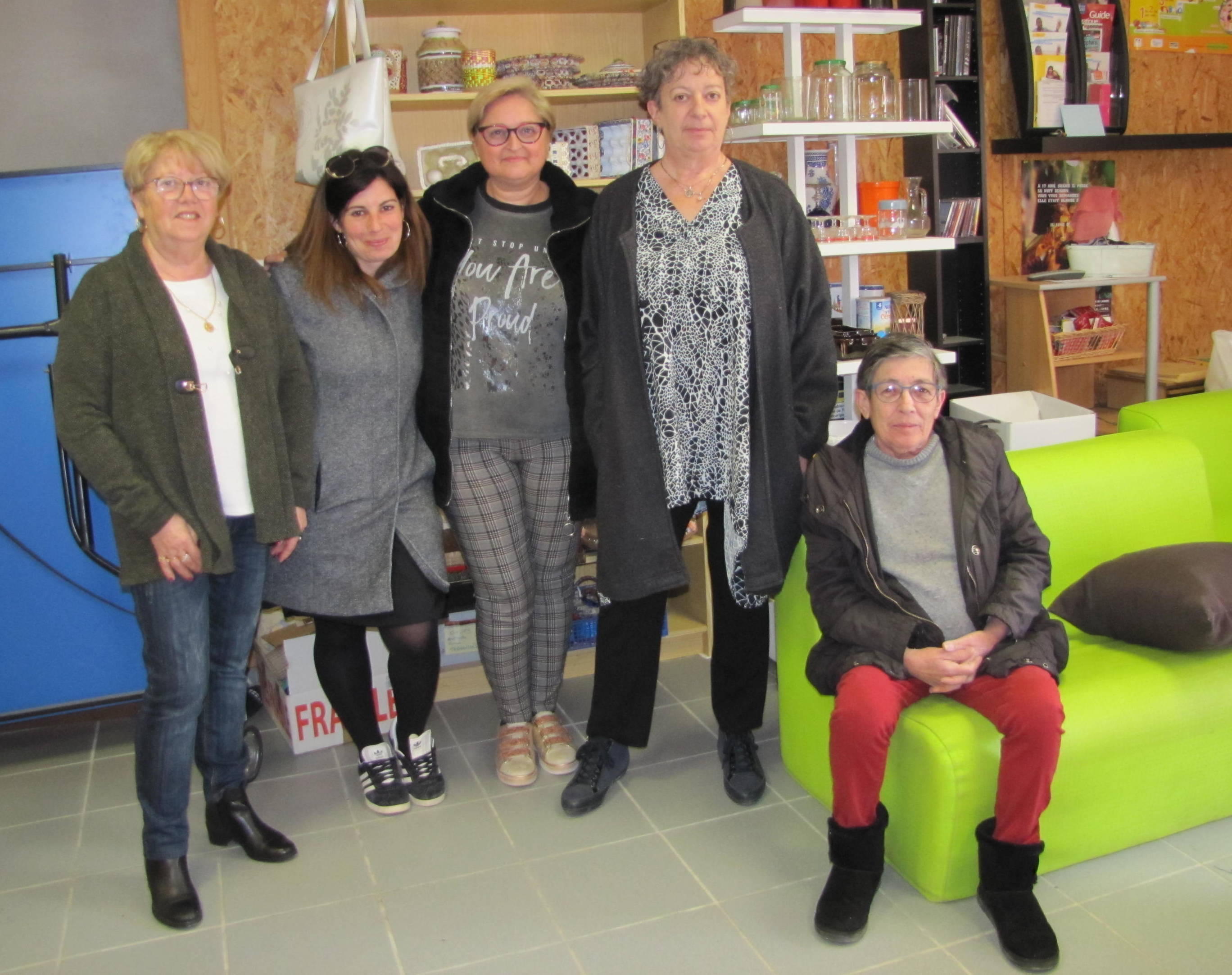 Le bureau de la MJC présidé par Dominique Denarnaud et les animatrices de l'atelier écriture. |