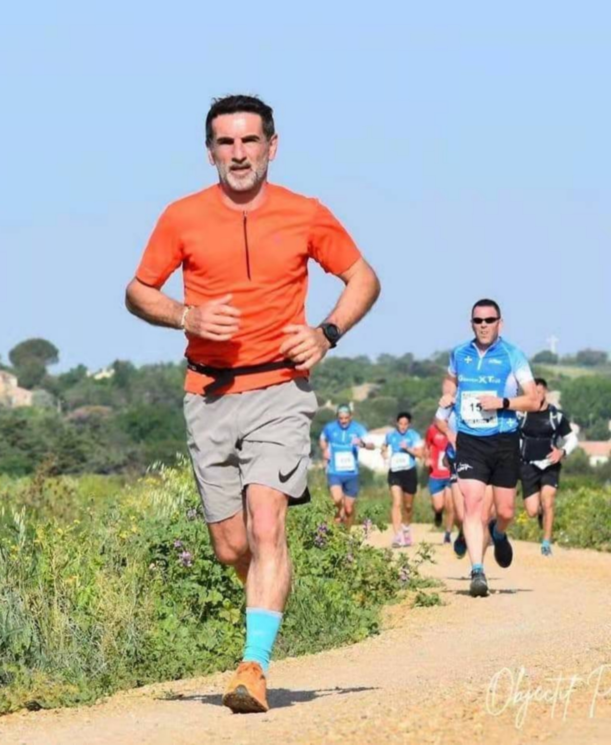 Les marathoniens de l'association Run & Trail à l'entraînement... Parmi eux, Jean-Louis Sarda, agent municipal au village. |