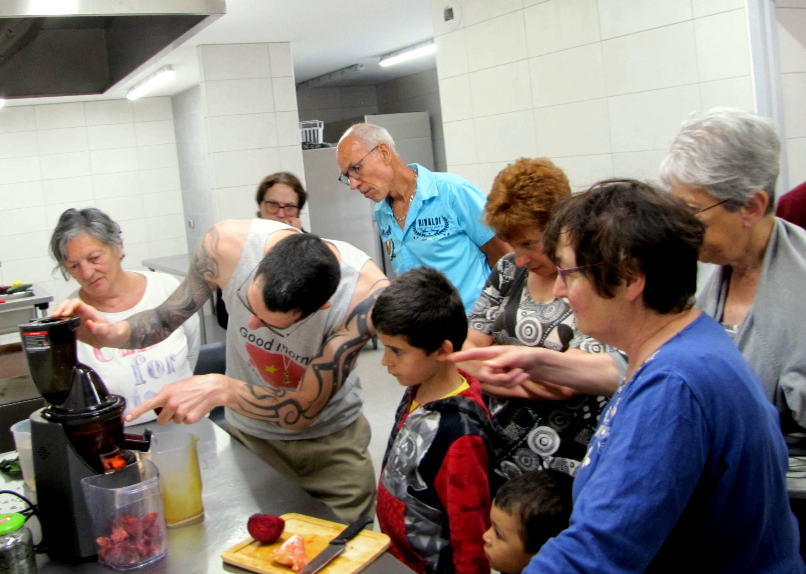 Le pressage des légumes et fruits s'est déroulé sous l'oeil attentif des participants.