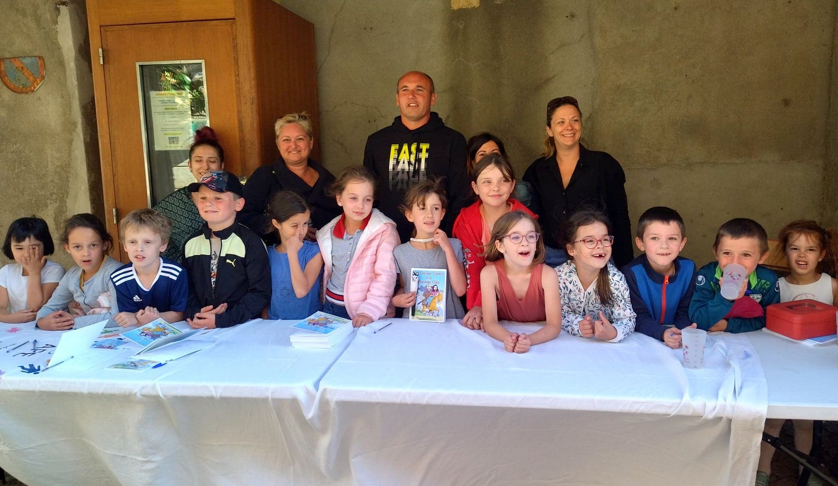 Les enfants se sont prêtés de bonne grâce à une séance de dédicaces. |