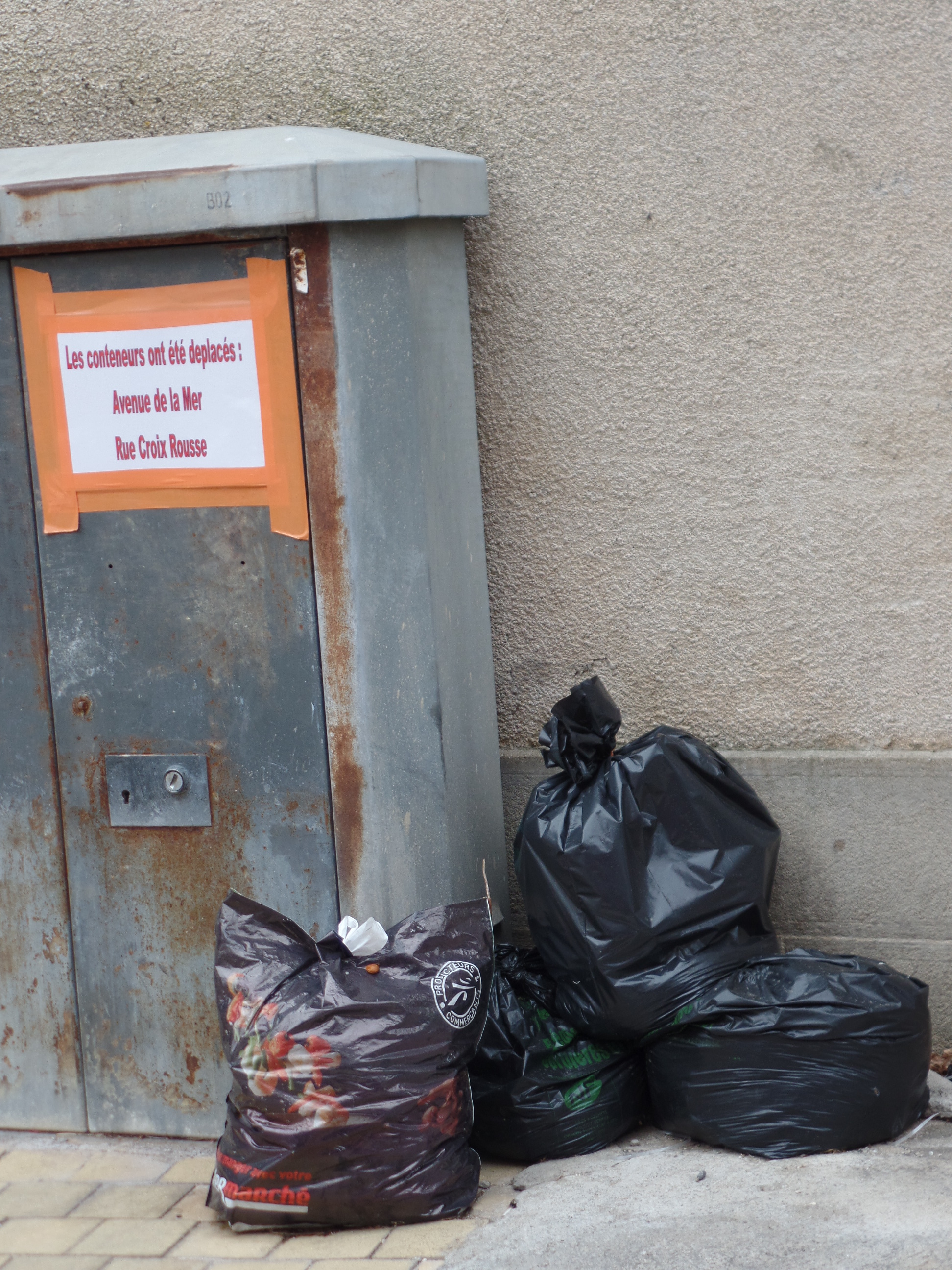 Le container enlevé, il est plus facile de poser les sacs à terre, même plus de couvercle à soulever!