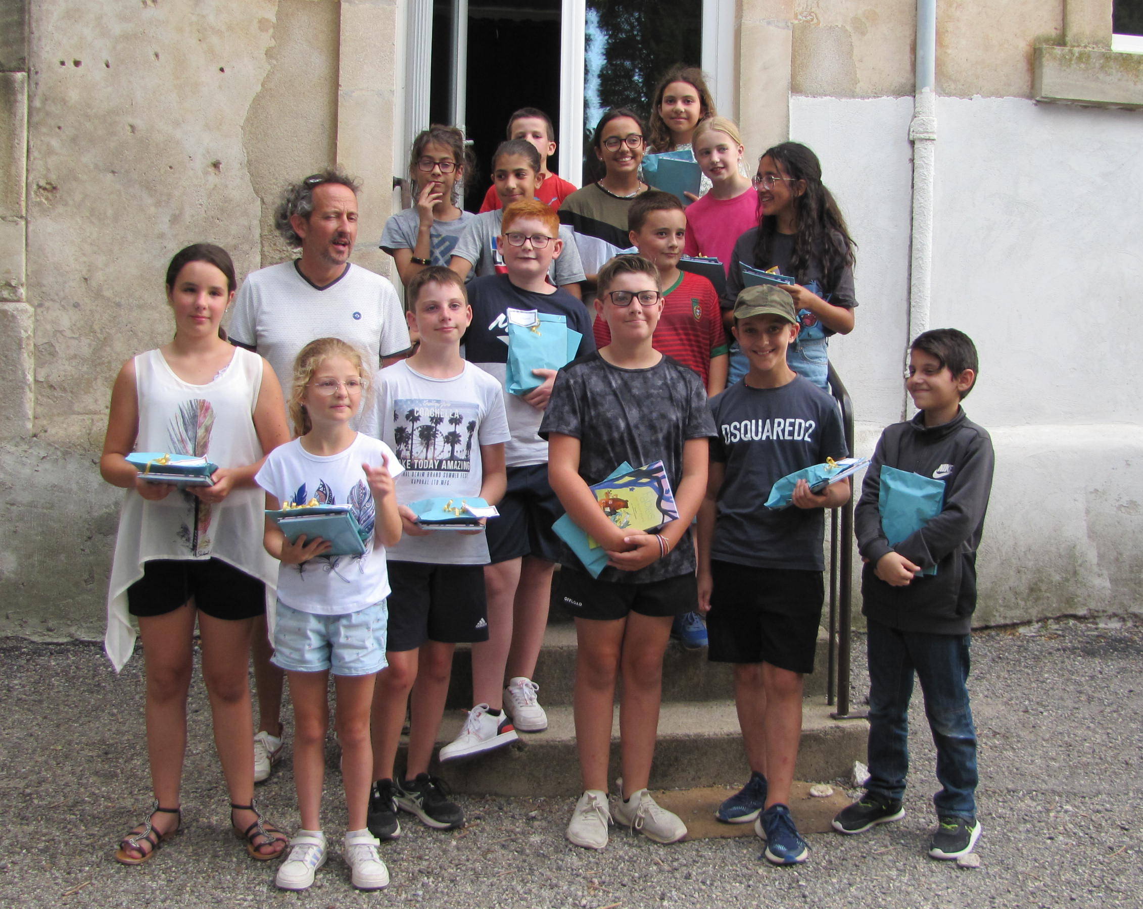du 12 juillet 2022 Des cadeaux pour les futurs collégiens Cette année, la traditionnelle cérémonie de remise des cadeaux aux élèves de CM2 du RPI Thézan - Montséret qui iront en 6ème à la rentrée avait lieu à Thézan ce mardi. L'occasion pour le maire Philippe Puech entouré de Catherine Lapérouse, inspectrice de l'Éducation Nationale de la circonscription de Lézignan, les adjointes aux écoles des deux communes, d'enseignants du RPI et quelques élus de féliciter les seize élèves concernés et les encourager pour la prochaine rentrée. Un pas important vers la vie de citoyen«Aujourd'hui, vous quittez l'école élémentaire pour le collège. C'est un pas important vers la vie de citoyen. Merci à vos enseignants et à tout le personnel qui vous a accompagné tout au long de votre scolarité. C'est un travail collectif qui mérite d'être salué» a ajouté le maire.Ce dernier avait débuté par un hommage à Geneviève Fabre, maire de Montséret récemment décédée. Et après une rapide page d'histoire sur la vie de Jules Ferry à qui l'on doit l'école publique laïque, gratuite et obligatoire, la cérémonie s'est terminée par la distribution des cadeaux - calculatrice, clé USB et écouteurs - offerts par les deux communes auxquels s'est ajouté un livre des Fables de La Fontaine remis par Catherine Lapérouse, sous les applaudissements des parents. Souhaitons par anticipation une excellente rentrée aux futurs collégiens!