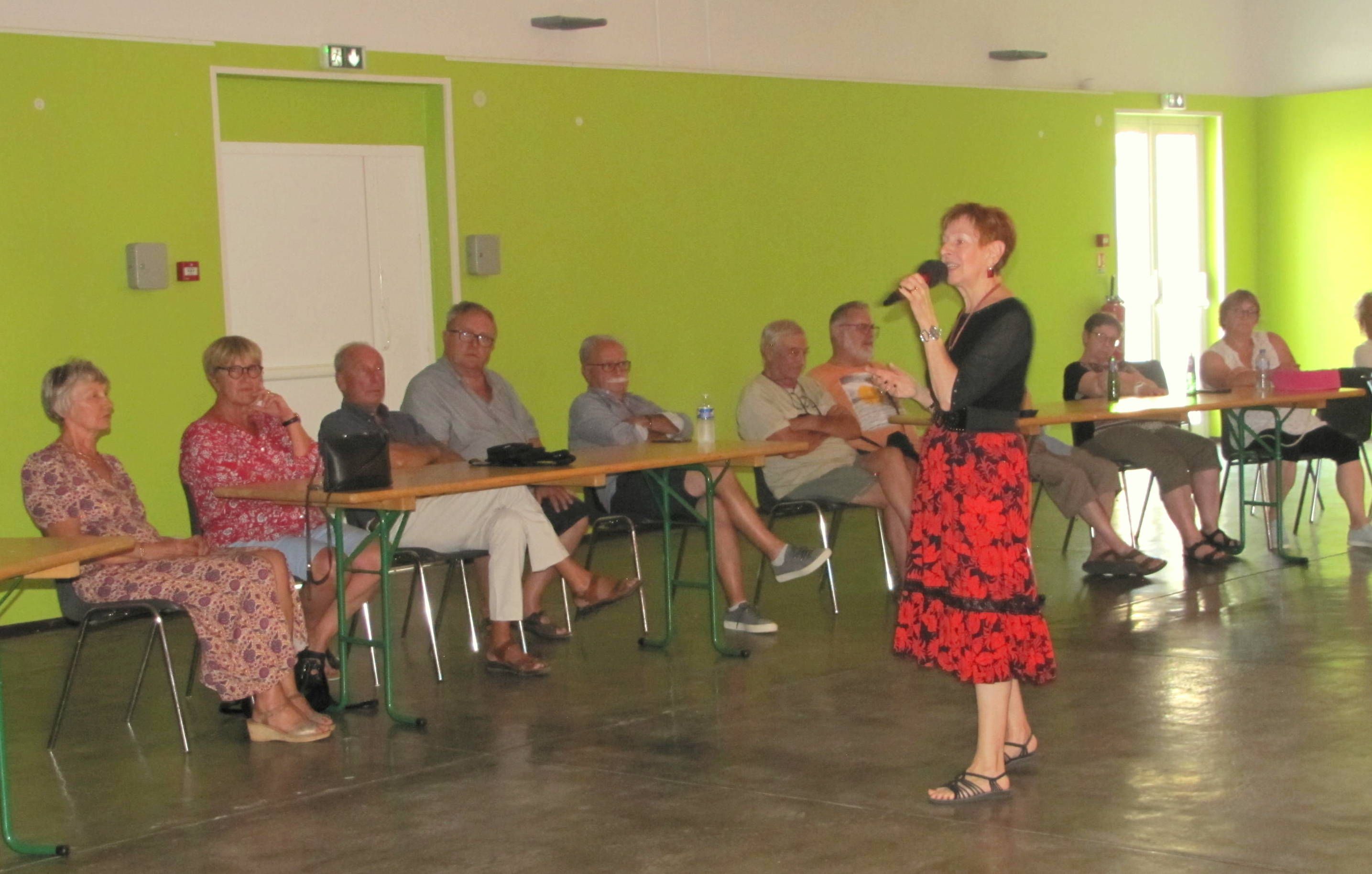 du 02 aout 2022 Un concert cabaret très apprécié Peu après la création du Carambole club il y a trois ans, Pierre Troupel, pianiste et formateur du club avait proposé un concert en hommage à Charles Trénet pour contribuer à l’entretien des tables de billard. Après deux années fermées aux animations en raison de la crise sanitaire, dernièrement, il renouvelait la même opération pour financer, cette fois, des nouveaux tapis pour deux tables de billard. Une fin d’après-midi style cabaret était au programme. Pierre au piano accompagnait Léa, chanteuse qui a séduit le public avec le talent qui l’anime dans ce voyage musical. Les chansons françaises des années soixante à aujourd’hui, interprétées avec sensibilité ou une petite touche d’humour, ont été très applaudies par la trentaine de personnes venues écouter et apprécier le duo qu’elle forme avec le pianiste. Le président José Afonso était satisfait de ce moment de convivialité qui s’est terminé par un apéritif préparé et servi par les membres du club et amis autour des tables, histoire de prolonger la magie du moment.
