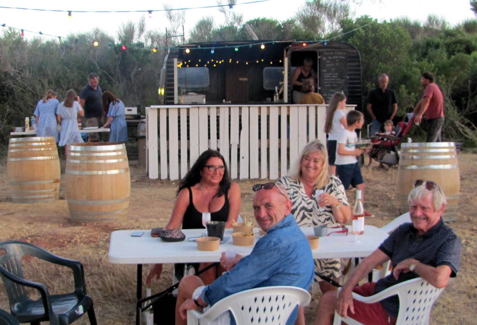 du 09 aout 2022 moments d’échanges chaleureux avec "La caravane au bord de la vigne" Quelle idée originale a eu Camille Castera, vigneronne qui s’est installée au Petit Donos il y a cinq ans, d’ouvrir son domaine au public. Les soirs d’été sont faits pour être conviviaux et créer des moments d’échanges, Camille l’a bien compris en organisant une première soirée autour de " La caravane au bord de la vigne ". Avec de l’huile de coude et des idées, une ancienne caravane a repris vie et couleurs et a été posée en bordure de la vigne offrant un cadre aussi champêtre que reposant. Entre dégustation des cuvées du domaine, des vins biologiques AOC Corbières et IGP Pays d’Oc et tapas variées, la soirée a réuni une quarantaine de personnes heureuse de partager ce moment privilégié avec les propriétaires des lieux qui ont tout préparé avec amis et famille. Une douce soirée d’été qui en appelle d’autres.