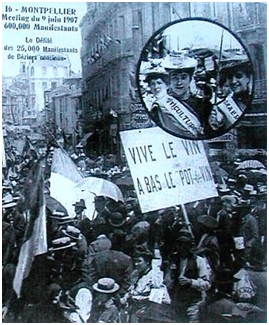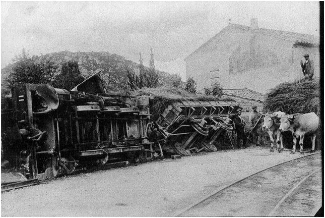 1907 - la Révolte des Vignerons - Des trains spéciaux gratuits transportent les manifestants dont les slogans recouvrent les wagons. "du pain ou la guerre". Tel les taxis de la Marne, c'est au train des Corbières que l'on doit l'ampleur des foules considérables rassemblées dans les grandes manifestations de Narbonne, Lézignan, Béziers ou Montpellier.