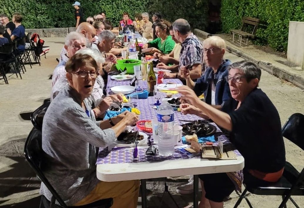 du 08 septembre 2022 Super soirée du club de gym Pour sa soirée annuelle, la Fédération jeunesse et éducation populaire (FJEP) a réalisé un véritable tabac. Il est vrai que les traditionnelles moules au pastis et les frites, préparées depuis des années par les membres de la FJEP et le club de gym présidé par Catherine Legris, ont acquis une sacrée réputation. Pour cette soirée de rentrée, José Afonso, président du Carambole Club, et Pierre Troupel, formateur au sein du même club ainsi que quelques bénévoles, ont prêté main-forte à la gym pour un exercice pour le moins périlleux vu le nombre de convives. Cent vingt-cinq personnes avaient répondu à l’invitation et se sont retrouvées place du boulodrome. Même pas peur d’une éventuelle pluie annoncée mais jamais venue ! L’ambiance y était joyeuse et bon enfant, l’occasion pour chacun de passer un bon moment à quelques jours de la reprise des activités et un ultime moment de détente estival et gourmand apprécié de tous. Une soirée qui a permis de faire un bénéfice appréciable qui apportera un peu d’eau au moulin pour assurer la charge financière de la coach sportive de la FJEP.