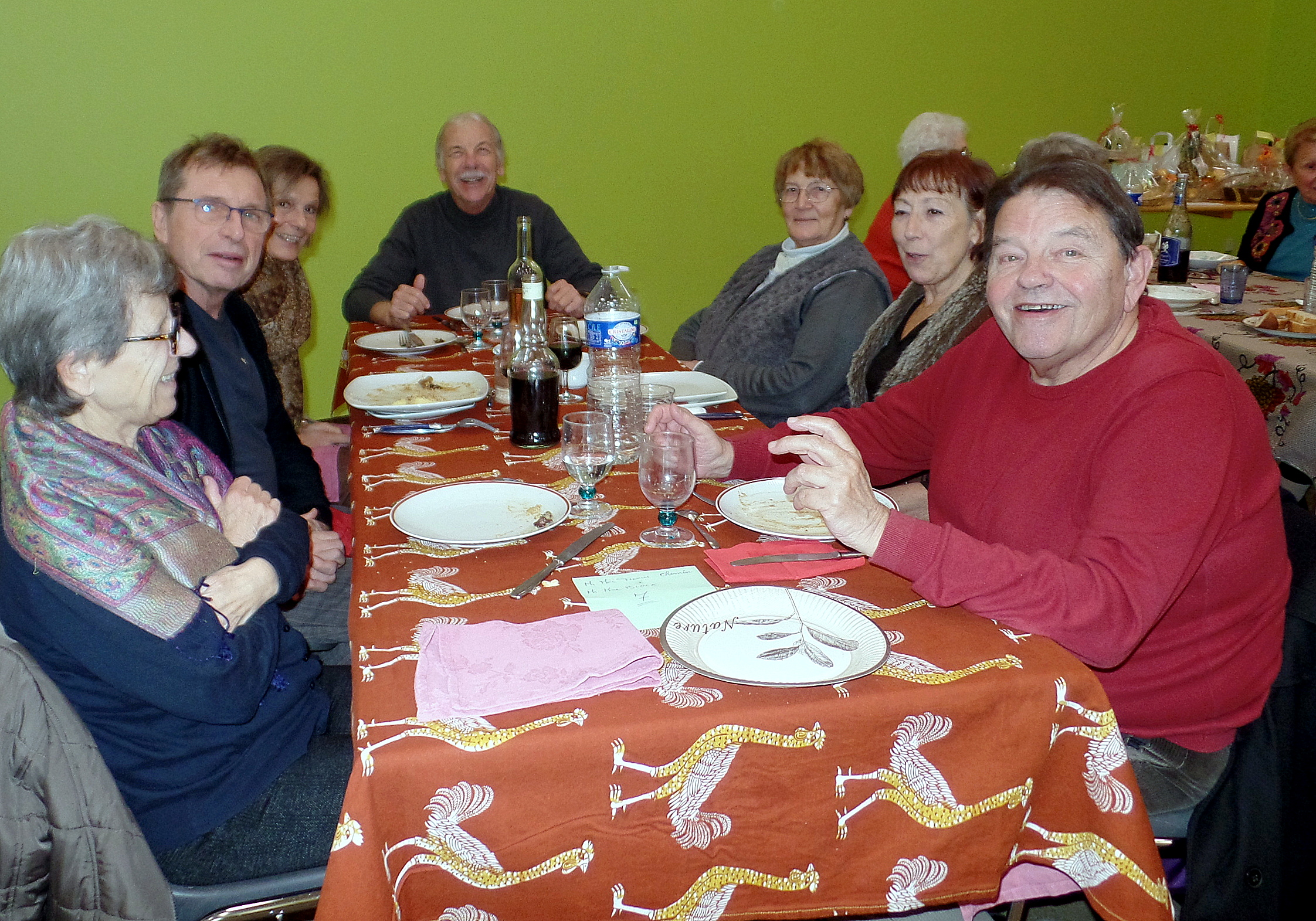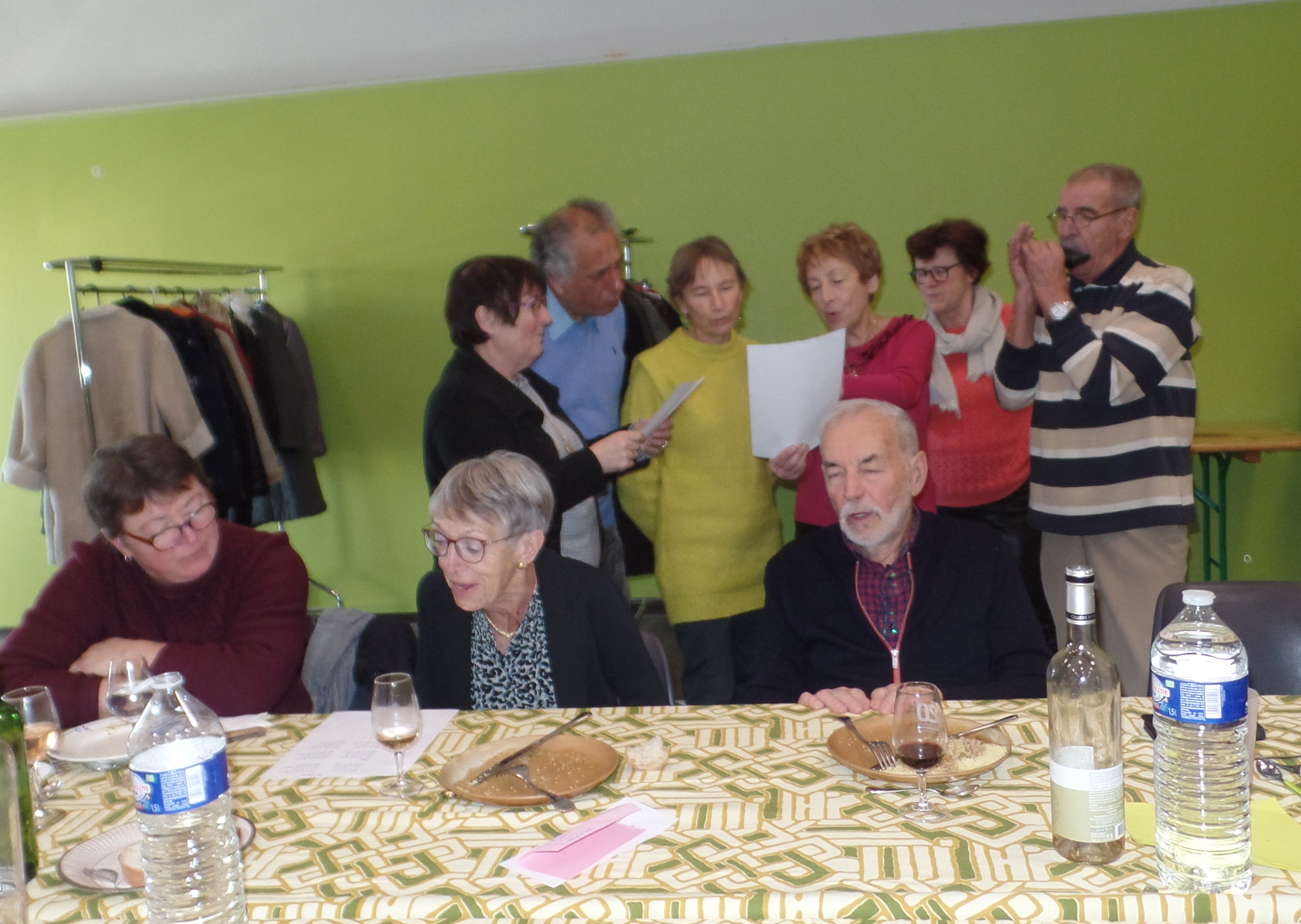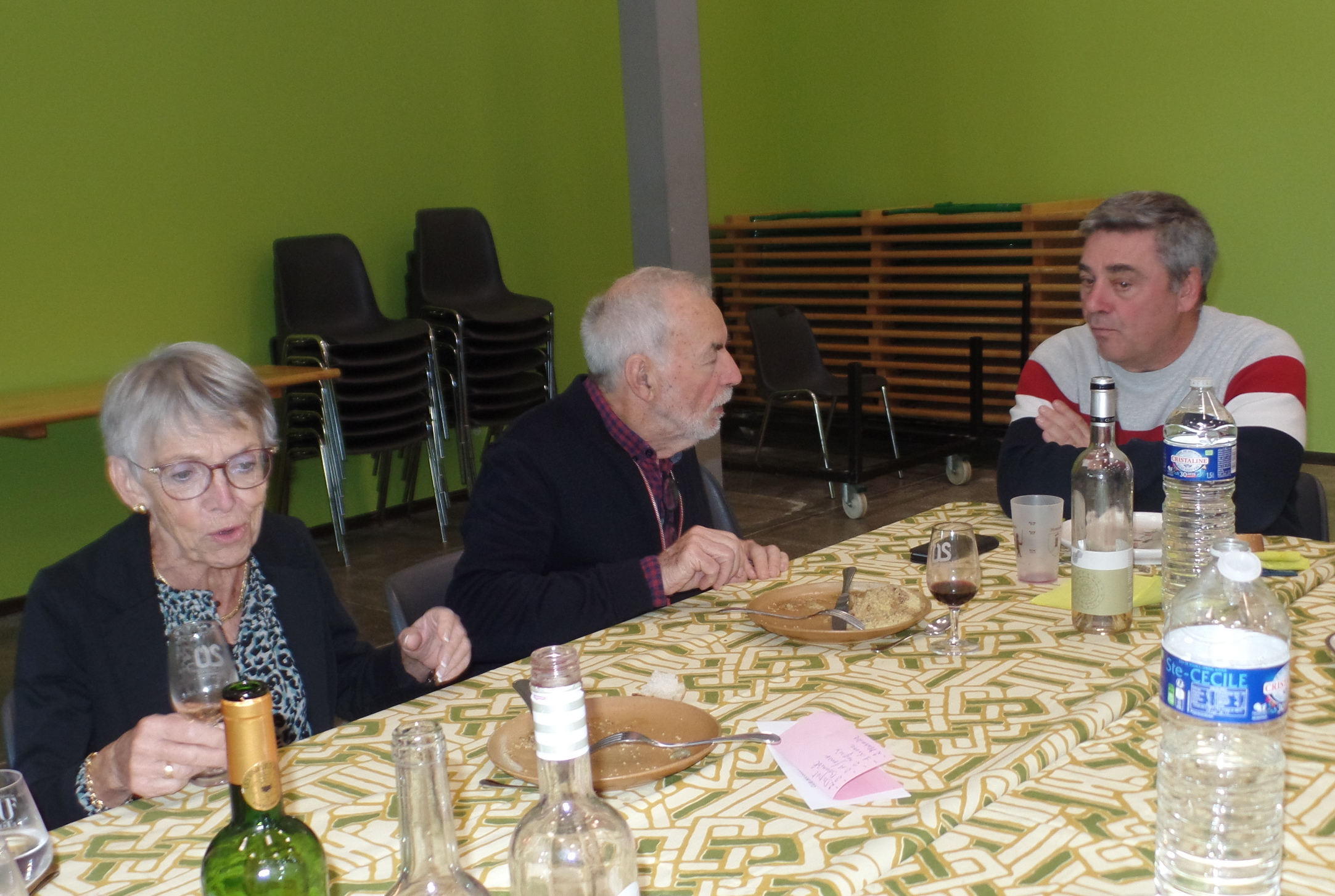 du 15 decembre 2022 Repas convivial pour la Sainte Eulalie Le 10 décembre, c'est la sainte Eulalie, jeune martyre espagnole, patronne du village. L'actuelle église dont la construction s'est terminée en 1864 lui était dédiée, tout comme l'était l'ancienne église ruinée datant du XIe siècle implantée à l'intérieur des remparts au coeur du vieux village en circulade, appelé «Le fort». . Le père Louis et l'association Les amis thézanais du patrimoine ont donc célébré la fête patronale ce dimanche qui a débuté par une messe à laquelle ont assisté de nombreux fidèles. Mais cette année, nouveauté, en lieu et place du traditionnel concert de Sainte Eulalie, l'association présidée par Nicole Garras a opté pour un repas convivial. Plus de cinquante convives - ont participé avec plaisir à cette pause gourmande, préparée par les bénévoles et la boucherie saint-laurentaise et appréciée de tous. Une bonne occasion pour les Thézanaises et Thézanais de se retrouver pour discuter et apprécier des échanges dans une ambiance chaleureuse et amicale.