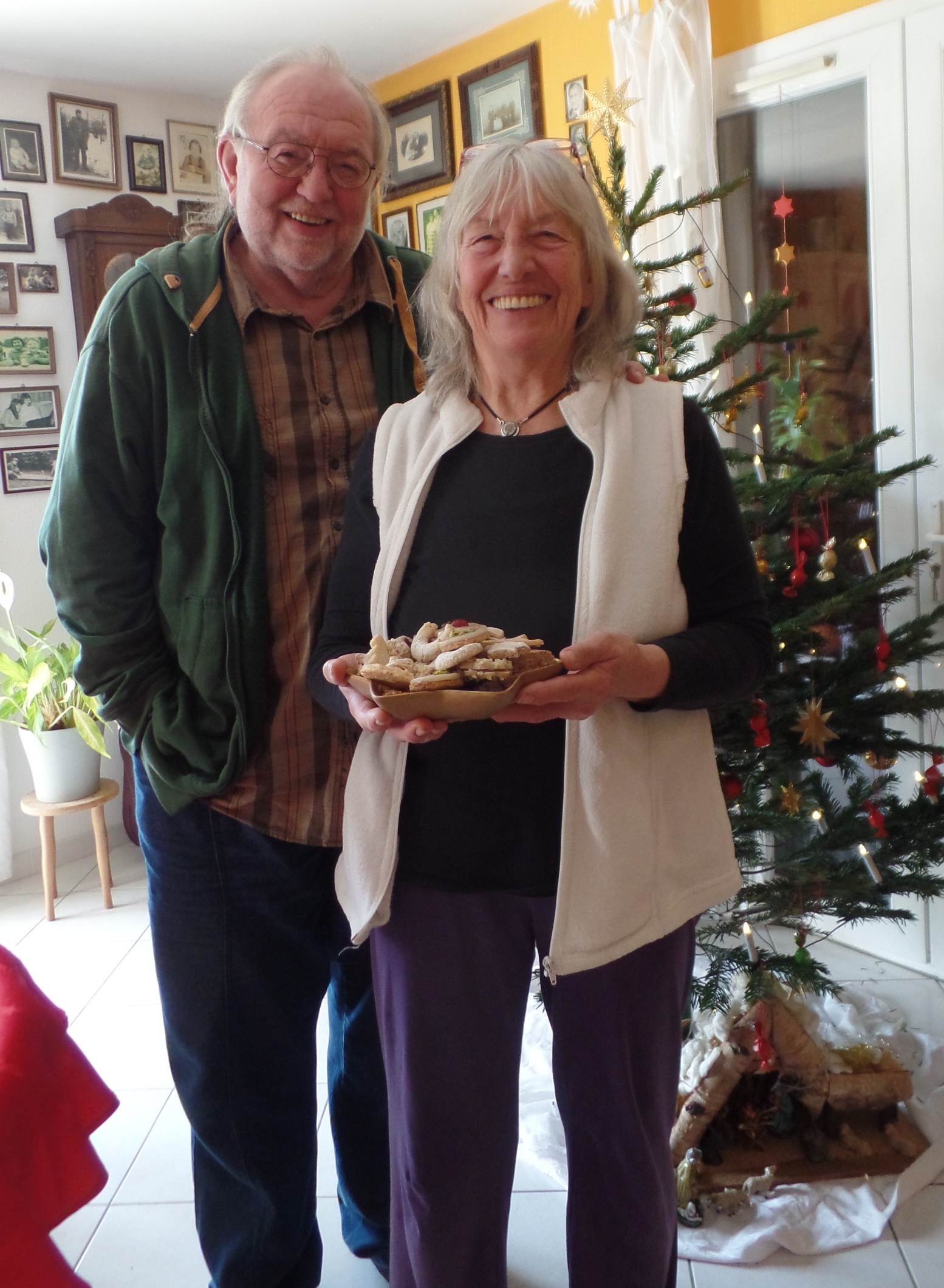 Devant le sapin, Elfi et Uli présentent les biscuits traditionnels de leurs Noëls bavarois qu'ils dégusteront jusqu'au 1er janvier! |