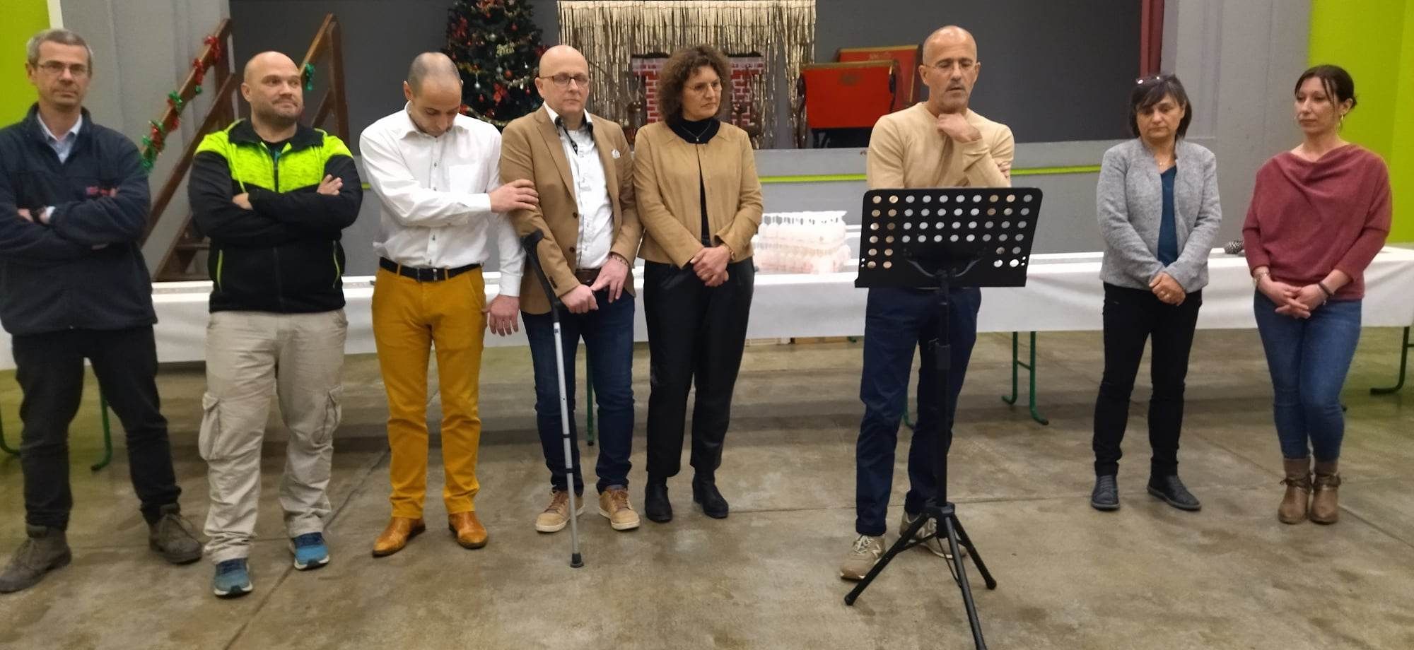 Entouré d’une partie du conseil municipal, le maire a dressé bilan et projets avant de partager le buffet dînatoire préparé par des élus, personnels et bénévoles. |
