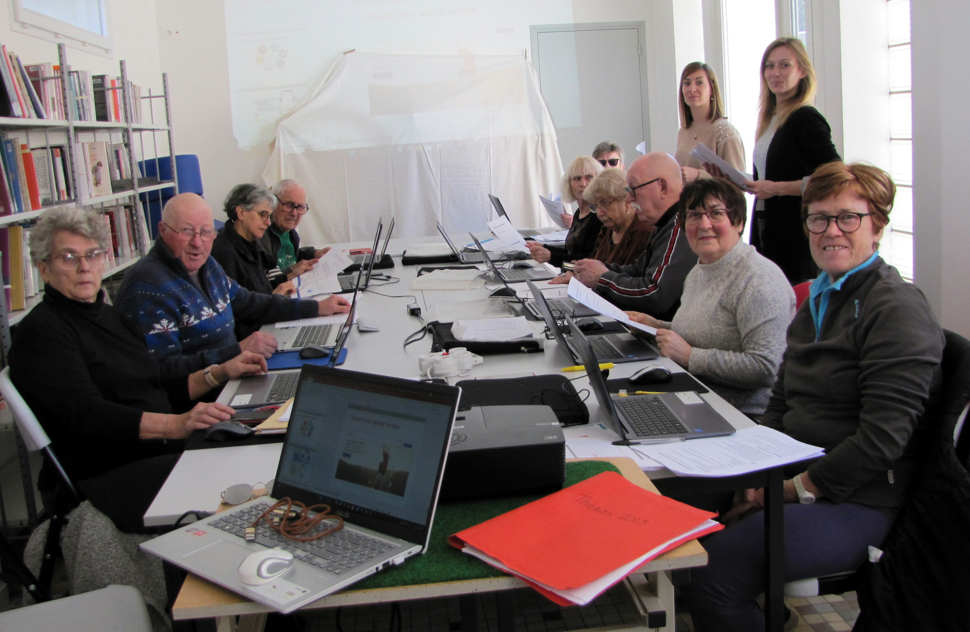 Encadrés par Charlotte Begard et Victorine Bernat de Familles rurales, onze Thézanais ont découvert ou perfectionné l'utilisation de l'outil informatique. |