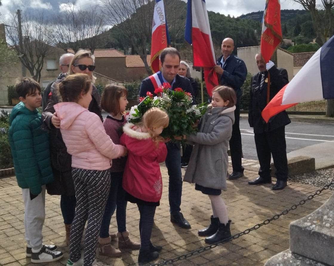 du 21 mars 2023 Commémoration du 19-mars : Thézan-des-Corbières avec des écoliers Une vingtaine de personnes étaient présentes autour du maire Philippe Puech pour commémorer le cessez-le-feu en Algérie après la signature des accords d’Évian effectifs le 19 mars 1962 à midi. Uniquement lors de cette commémoration, le cortège se rend au square du 19-Mars pour marquer un moment de recueillement en hommage aux victimes militaires et civiles de ces combats. Après avoir laissé la place aux enfants pour déposer la gerbe au pied du monument aux Morts, le maire a donné lecture du message de Patricia Mirallès, secrétaire d’État auprès du ministre des Armées. "Nul ne conteste que le cessez-le-feu ne fut pas respecté. Chez les militaires comme chez les civils, les morts s’ajoutèrent encore aux morts. Des blessés aux blessés. Des disparus aux disparus. La période qui s’est ouverte après le 19 mars a été celle de bien des souffrances" y soulignait Patricia Mirallès.