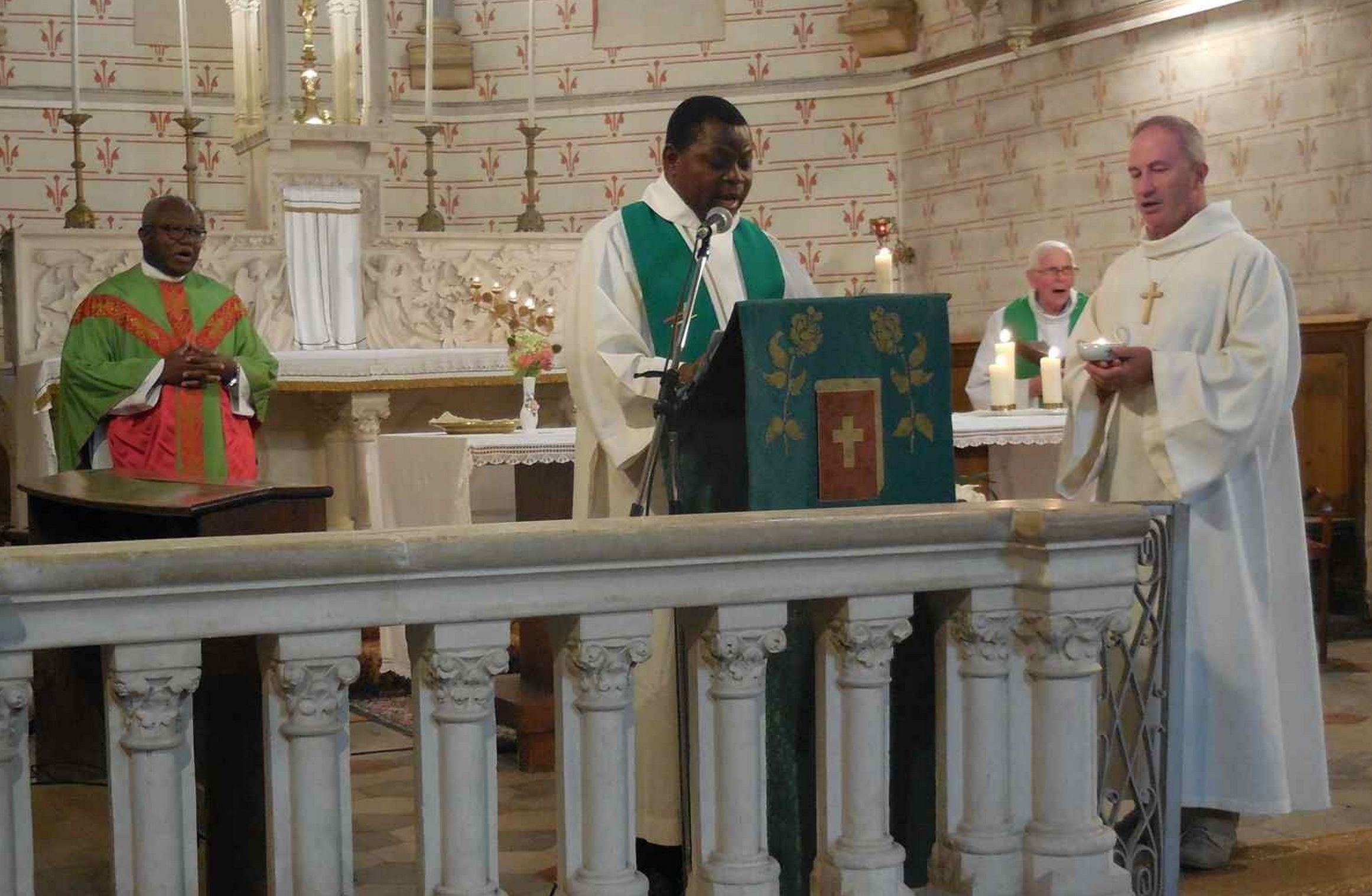 Le Père Louis a rendu un hommage ému au Père Éloi et au père François venus apporter leur aide et soutien dans la paroisse Sainte-Thérèse. |