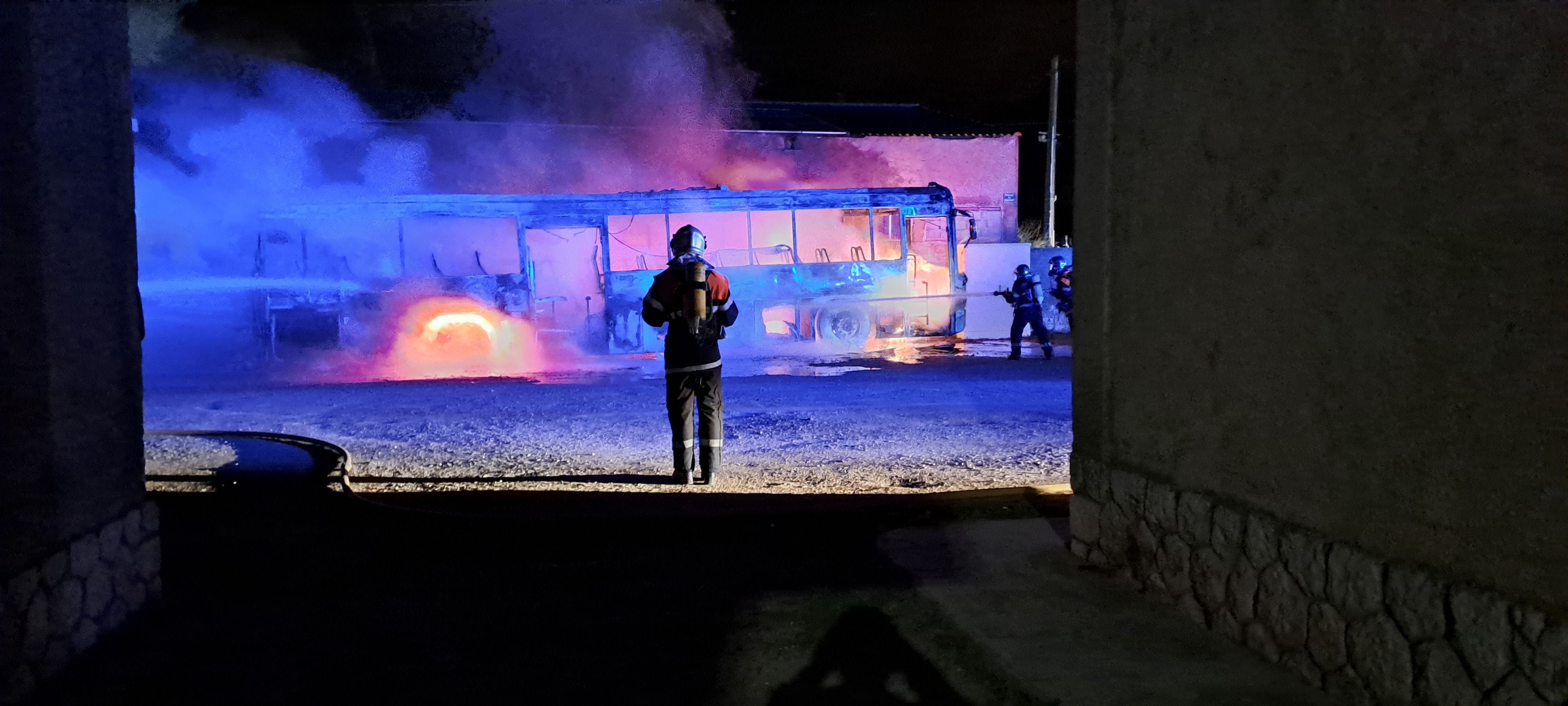 Malgré l’intervention rapide des pompiers, le bus a été totalement détruit par les flammes.