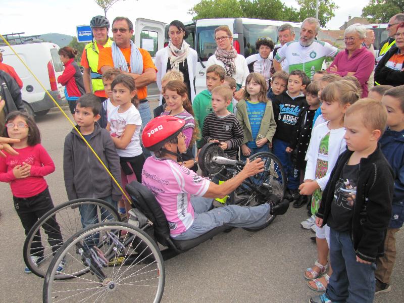 Chaleur et convivialité au menu du 13ème tour de l'Aude handisport: Cette année, Thézan était village départ de la 2ème étape du tour de l'Aude handisport qui emmenait les 70 concurrents vers Tuchan...«une belle étape dans les Corbières et sous le soleil» constatait Jean-Georges Chevalier, organisateur de l'épreuve. «Le sport, qu'il soit loisir ou compétition peut être aussi pratiqué par tous à condition que les équipements et règlements soient adaptés aux handicaps. Vous en êtes la preuve» soulignait le maire Patrick Dapot, avant de remettre la médaille de la ville à Jean-Georges Chevalier qui, à son tour offrait la médaille du comité départemental handisport. Dès 8h, les équipages arrivaient sur place pour un petit déjeuner préparé et servi par le maire et les membres du conseil municipal. C'est dans une ambiance très chaleureuse et conviviale que chacun a pu apprécier cette pause, avant départ, organisée avec une attention toute particulière. De nombreux Thézanais sont venus rejoindre l'ex maison des villages pour partager un moment avec les sportifs, tous handicapés moteurs ou sensoriels qui dépassent leur handicap avec volonté et enthousiasme. L'épreuve dure quatre jours, avec des concurrents de 11 départements, 40 communes traversées, 240 km parcourus, 1200 enfants rencontrés... Les enfants sensibilisés