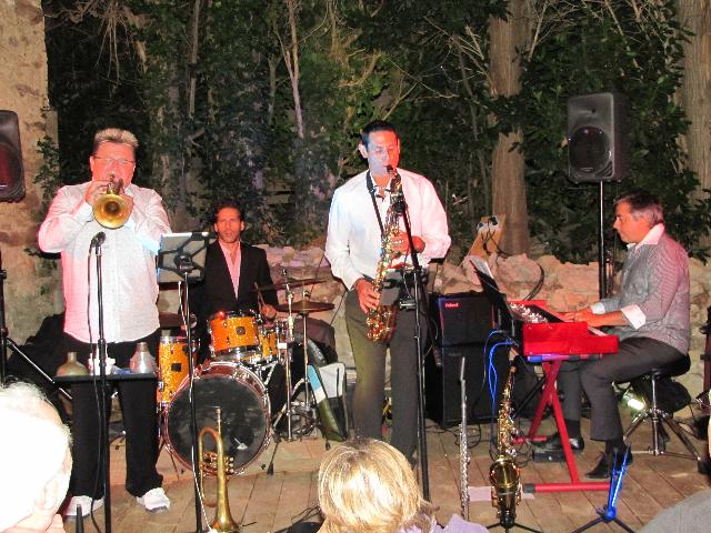 Le Carré d’As au jardin du jazz: des moments d'une rare beauté «Je crois que nous devons essayer de créer la musique la plus belle possible. Il y a tant de haine dans ce monde que nous devons la combattre avec de la beauté». Il semblerait que Jean Michel Cabrol ait entendu la voix du Maître Stan Getzt, musicien de jazz américain considéré comme l'un des plus grands joueurs de sax ténor, lui murmurer cette réflexion à l’oreille : En cette douce soirée du 19 août 2015, le Carré d'As emmené par Cabrol a offert quelques moments de grâce d’une rare beauté au public réuni dans un silence respectueux. Les morceaux joués ont été pour la plupart des compositions personnelles de Jean-Michel Cabrol (sax ténor et alto, clarinette) et de Thierry Ollé (orgue), accompagnés par André Neufert (batterie) et Dominique Rieux (au chant, à la trompette et au buggle): Rue du paradis, Petit homme aux doigts d’or (hommage au pianiste Michel Pettrucciani), Note bleue, La biguine Amana, Funky gaga. Les musiciens ont répondu généreusement aux rappels d’un public enthousiaste ne voulant pas rompre ces moments de communion avec les musiciens. L'un des plus intenses fut certainement la chanson de la bande originale du film Le Parrain entonnée par Dominique Rieux dont la voix chaude semblait bercée par le son langoureux du saxo ténor… L’association La Douceur des arts était heureuse d’accueillir en son Jardin, les derniers lauréats du Tremplin jazz récompensant le meilleur groupe au dernier Festival de Jazz à Sète en juillet 2015. L’aventure de la saison estivale du Jazz au jardin prendra fin par un dernier concert de Jazz le 31 août avec le groupe Tante Jaco de Toulouse.