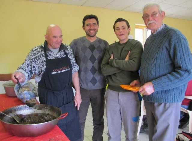 Chasse: saison terminée... Il y a quelques jours que la saison de chasse est terminée. Et déjà, samedi matin, les chasseurs et leur président Fabrice Oliver étaient de nouveau sur le territoire communal pour ce que l'on nomme «les journées de passage» qui ont pour but de nettoyer les sentiers, vérifier et réparer les postes de guet... Et ce sera ainsi un samedi tous les quinze jours jusqu'à la fin juin. Et pour cette première journée de travail qui marque la fin d'une saison de gros gibier relativement bonne avec 53 sangliers abattus et 5 chevreuils, les chasseurs se sont retrouvés pour un repas, salle du boulodrome. Au menu, une daube de bœuf «à la mode Patrice» signalait Patrice Marty, cuisinier pour l'occasion et en dessert, les oreillettes thézanaises fabriquées par Sylviane. De quoi ajouter à la bonne humeur ambiante partagée entre la vingtaine de chasseurs présents dont le maire Patrick Dapot et le plus jeune de l'ACCA, Alan qui vient d'effectuer sa première année de chasse... «et c'est un très bon fusil» ajoutait le président.