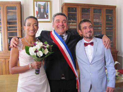 Le benjamin de l'équipe municipale se marie Un mariage c’est un jour de fête ! Leurs voisins en ont fait l’expérience ce samedi, jour où Olivier Pizzighini et Charlène Touré ont décidé de convoler en justes noces. Dès le milieu de la matinée, la musique allait bon train place de l’ancien marché à deux pas de leur domicile jusqu’à l’heure où les futurs époux se sont rendus à la mairie. « Arrivés en 2012 à pas de velours dans notre petit village des Corbières, en provenance de la capitale des Gaules, Lyon et d'une région viticole très prisée le Beaujolais, vous vous êtes installés au cœur du cru Corbières, dans un endroit mythique - la traverse de la Couverte - voire même stratégique » a précisé le maire, Patrick Dapot. Tous deux se sont très vite intégrés dans la vie associative : Olivier à la MJC et un peu plus tard l’association Floralies, Charlène en reprenant la tête de la FJEP, club de gym et badminton. Pour le jeune couple, leur mariage marquait le 10e anniversaire de leur rencontre. Pour le maire, il avait aussi une signification particulière, Olivier étant le benjamin de l’équipe municipale. Et c’est donc entourés de leurs familles, amis et voisins, de leurs deux enfants Jiulia et Noah qu’ils ont échangé leurs consentements en présence de plusieurs conseillers municipaux et sous les applaudissements de leurs invités venus leur souhaiter tout le bonheur du monde !