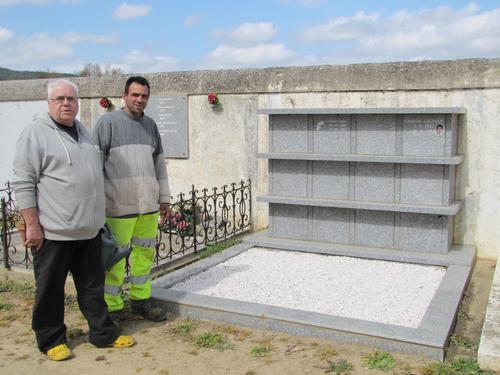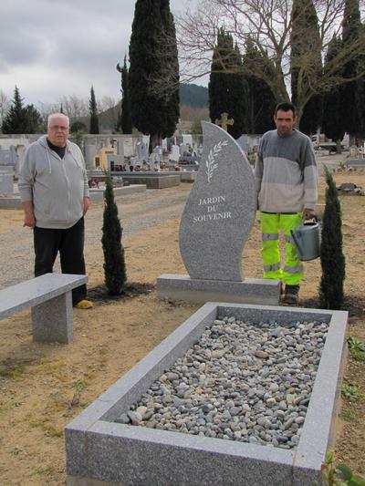 Columbarium et jardin du souvenir sont terminés Décidés à l'unanimité du conseil municipal il y a un an, les travaux de réalisation du columbarium et du Jardin du Souvenir sont terminés. Ils ont été menés par l'entreprise Jammes de Lézignan. Le columbarium comporte 12 casiers destinés à recevoir chacun deux urnes. Un jardin du souvenir avec stèle et emplacement délimité recouvert de galets pour y répandre les cendres a également été érigé face au columbarium. L'ensemble est réalisé en granit gris de Castres. Le montant des travaux s'élève à 5 000 € autofinancé par la vente des emplacements estimés à 450 € l'un. Cinq emplacements restent encore disponibles. Actuellement, les employés municipaux sous l'oeil avisé de René Auque, délégué au fleurissement, fêtes et cérémonies ont effectué des plantations sur ce site pour en faire un lieu serein et recueilli.