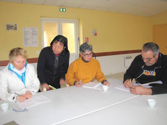 Les cours de chinois lancés! L'association « Au sud des nuages » a lancé un nouvel atelier : l'apprentissage de la langue chinoise animé par Lilan Peng dans le but de préparer les adhérents au voyage qui doit avoir lieu en octobre prochain. Les élèves y viennent pour apprendre les bases du mandarin, la langue officielle afin de pouvoir « se débrouiller » durant leur séjour en Chine avec l'animatrice pour guide. Quelques-uns viennent tout simplement pour le plaisir de décrypter cette langue aux intonations particulières et à l'écriture tout aussi complexe. Pendant dix semaines jusqu'au 4 juillet, Lilan Peng leur fera apprendre les phrases toutes simples pour dire bonjour, merci et autres formes de politesses, demander son chemin, faire des achats.... À entendre les diverses façons d'associer le ton à une lettre ou un mot, il va de soi qu'un investissement personnel sera indispensable pour être au point le moment voulu ! Les cours se déroulent de façon très conviviale autour autour d'un thé... histoire de se mettre dans l'ambiance.