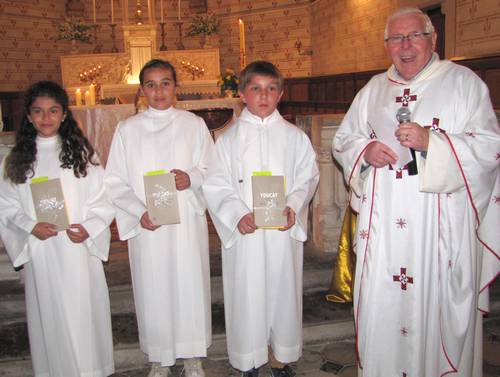 L'église Sainte Eulalie était comble pour la veillée pascale de la paroisse Ste Thérèse en Corbières qui s'est déroulée dans le plus parfait recueillement. Concélébrée par le Père Louis et le Père François, la fête de la Résurrection a suivi les rites traditionnels des fêtes pascales avec bénédiction du feu nouveau, de l'eau baptismale et du cierge qui accompagneront les services religieux et cérémonies pendant l'année. Les fidèles ont écouté avec attention les récit de la Genèse, lectures et homélie accompagnés de cantiques repris en choeur par l'assistance. Amélie, Biatrix, Guilhem et Isadora, quatre jeunes de la paroisse St Thérèse en Corbières faisaient leur profession de foi. Ils ont renouvelé les promesses du baptême entourés de leurs familles. A l'issue de la célébration, le père Louis, a remis à chacun un livre de prières et un livre répondant à toutes les questions que peut se poser un jeune chrétien à propos de l'Eglise et de la religion.