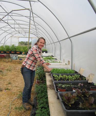 Mais les confinements successifs ont entraîné la disparition de la quasi-totalité de ces marchés et une baisse des ventes sur les marchés de plein-vent. Le manque d'activités commençait à se faire sentir et de plus, constat a été fait que la crise sanitaire donne des ailes aux jardiniers amateurs. Elle-même, passionnée de jardinage et de plantes, a donc décidé de cultiver des plants sous serre. Elle a contacté Maxime Ferrand dont les serres étaient inutilisées depuis quelques mois et un contrat de commodat (ou prêt à usage) a donc été signé où l'utilisateur ne verse pas de loyer mais a obligation d'entretenir les lieux. Depuis, elle vient chaque jour au village semer, mettre en godets ou rempoter des plants potagers classiques (tomates, courgettes, courges, salades...), des plantes aromatiques et des plantes médicinales qu'elle vend sur place. On y trouve aussi des plants de cosmos, de tabac... qui sont des auxiliaires au jardin pour les traitements naturels des plantes et de la terre.
