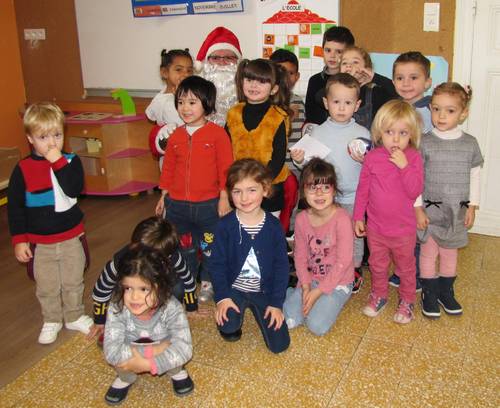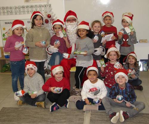 Les élèves de maternelle petite et moyenne section ont eu la surprise de recevoir la visite du Père Noël en milieu de matinée ce lundi. Les seize enfants étaient bien intimidés de voir arriver le bonhomme à la longue barbe blanche mais les chocolats et la place pour assister au spectacle prévu l’après-midi ont bien vite détendu l’atmosphère. Quelques-uns se sont même risqués à lui faire un bisou... c’est plus prudent pour être sûrs qu’il ne les oublie pas le jour venu! Au 1er étage, les élèves de moyenne et grande section attendaient de pied ferme le Père Noël - tous coiffés d’un bonnet rouge comme lui, même leur enseignante et l’atsem! Après avoir écouté les confidences des enfants, il leur a remis les mêmes cadeaux que leurs petits camarades. Ceux-ci avaient été commandés par la commune pour gâter les 33 enfants répartis des deux classes de maternelle du RPI Thézan-Montséret.